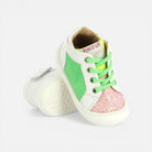 La fabrication du modèle YAKA utilise des matériaux soigneusement sélectionnés. Chaque composant respecte des normes rigoureuses de qualité et d'environnement. Le cuir employé est durable, garantissant une longue vie à la chaussure pendant les étapes de croissance du pied.