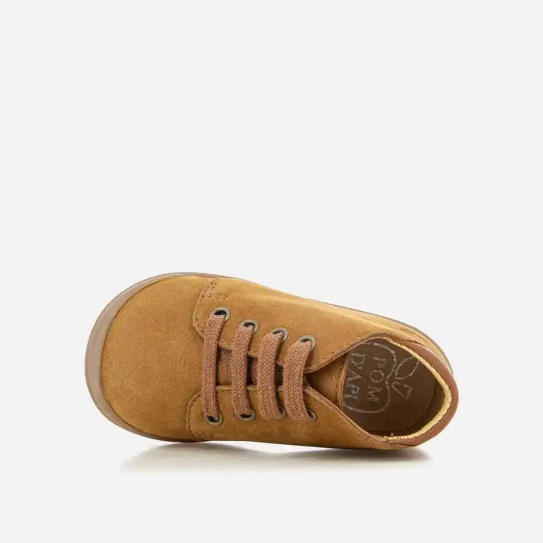 Cette chaussure premiers-pas à lacets pour enfants est présentée dans une version en cuir velours camel. Légère et dotée d'une semelle en caoutchouc, cette chaussure est conçue avec des matériaux de qualité pour le bon développement du pied. Un renfort Anti-Twist placé à l'arrière de la chaussure assure un maintien et une stabilité optimale, tout en offrant une souplesse à l'avant du pied. Un capot a été ajouté sur l'avant de la chaussure afin de la protéger.