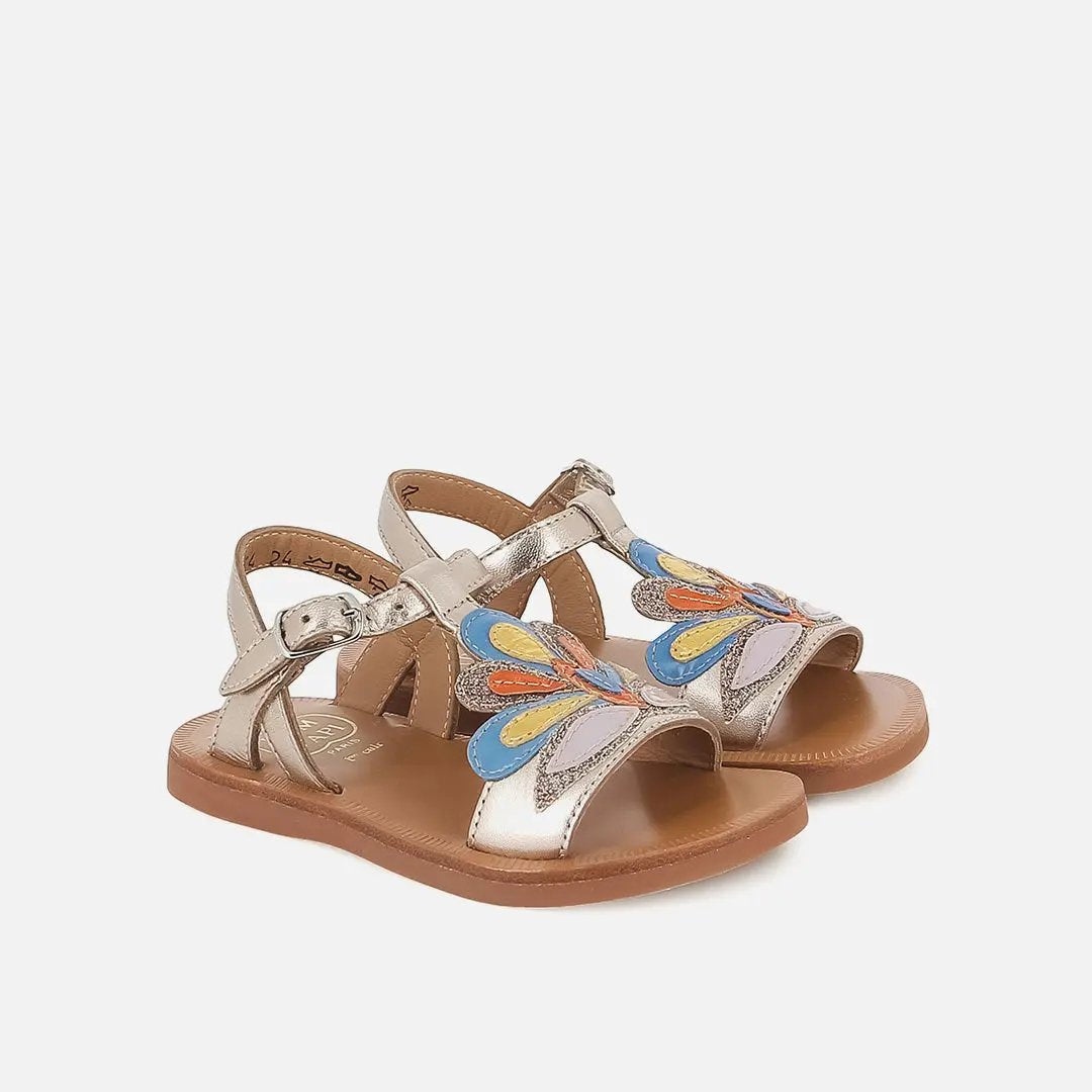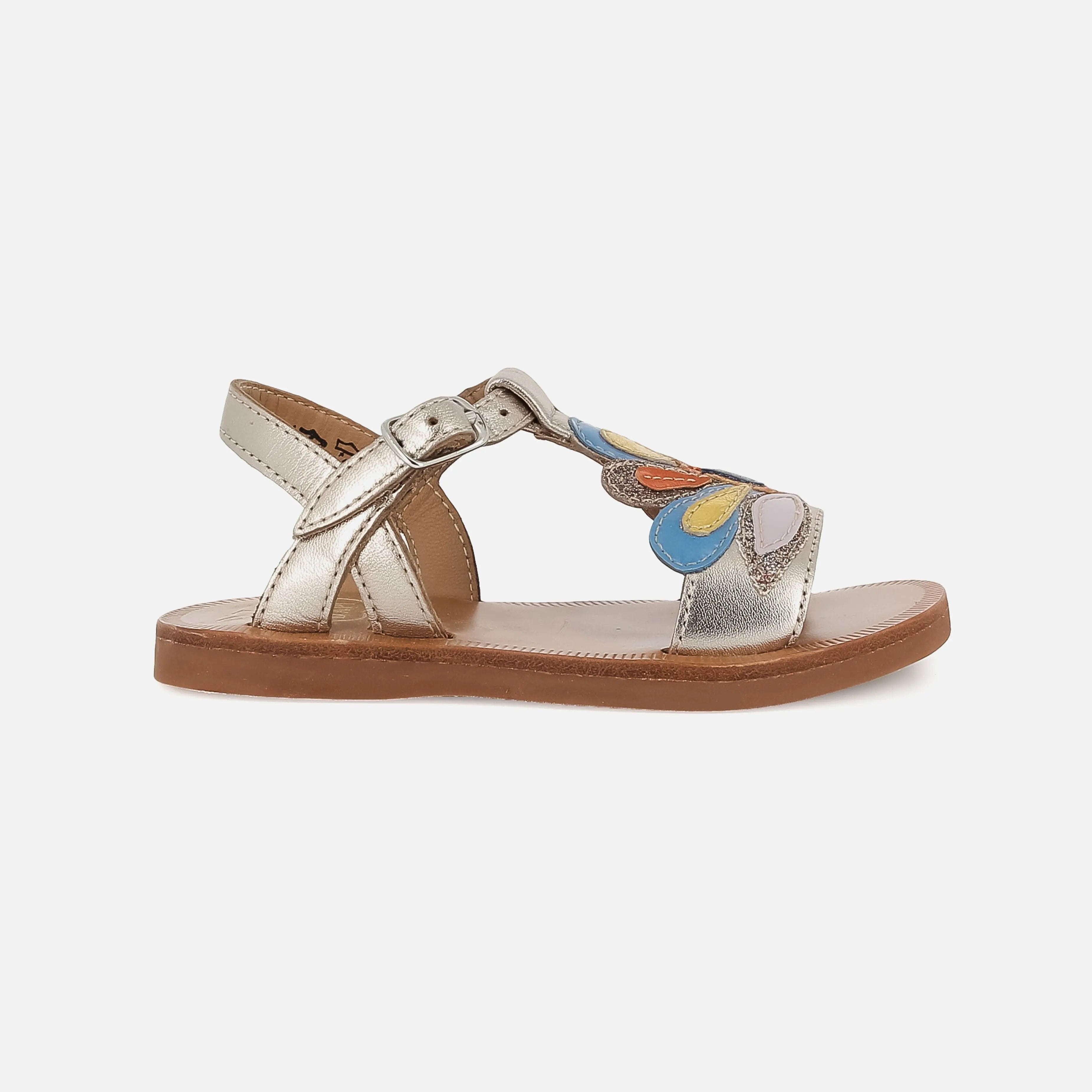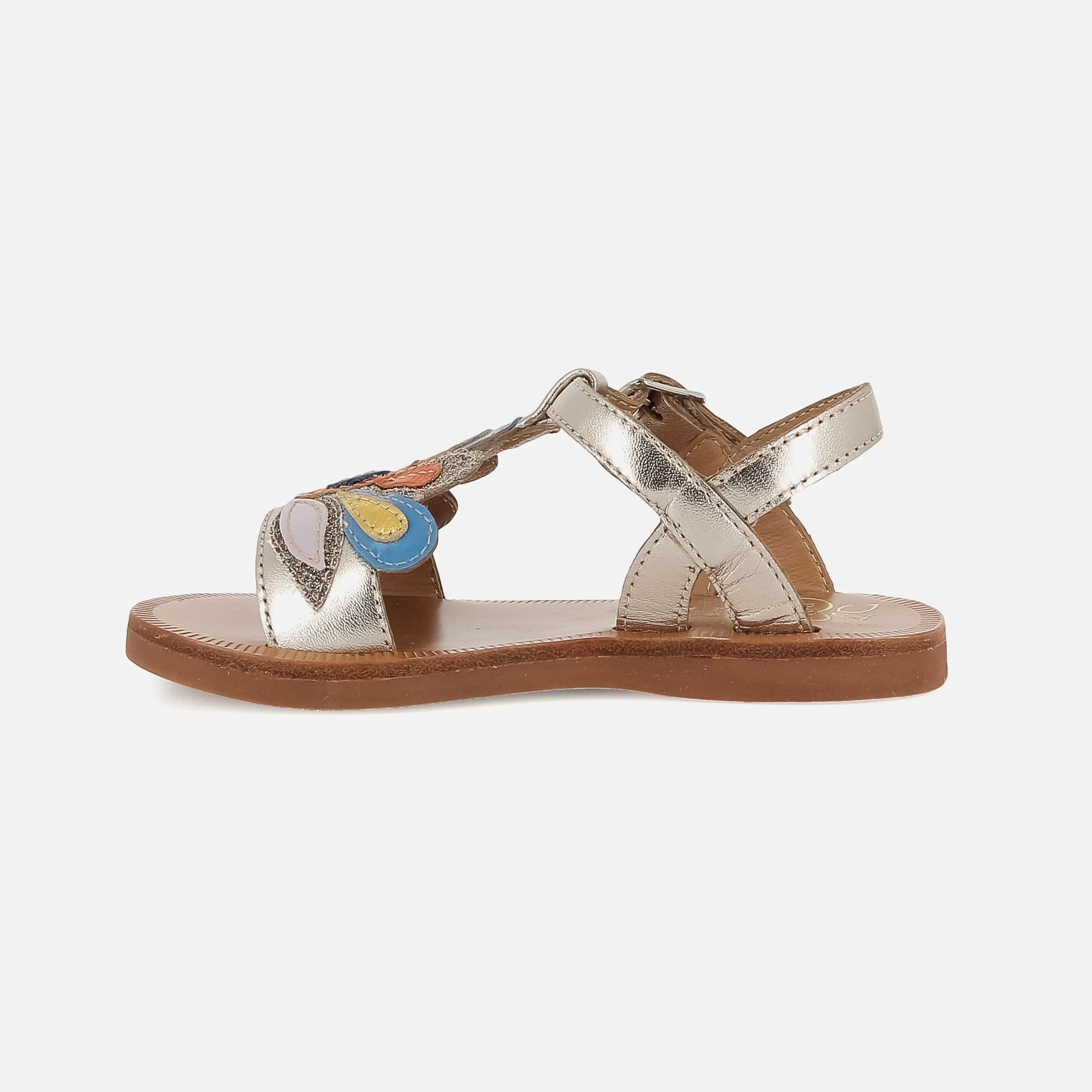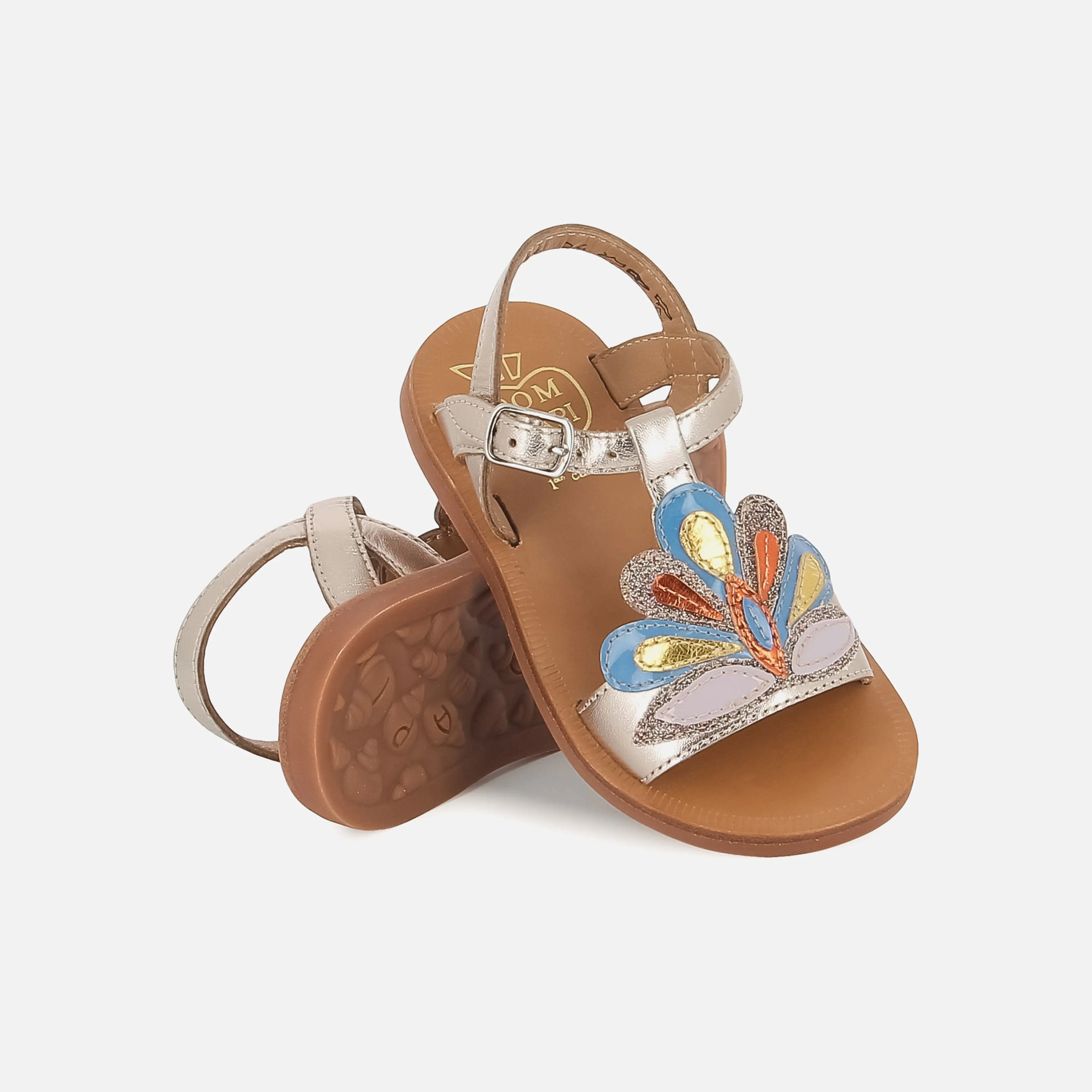 Cette sandale pour enfants est présentée dans une version en cuir métallisé violet, avec un empiècement fleur à l'avant. Cette chaussure souple et légère est conçue avec des matériaux de qualité pour le bon développement du pied. Elle s'ajuste facilement à la cheville grâce à sa boucle réglable.