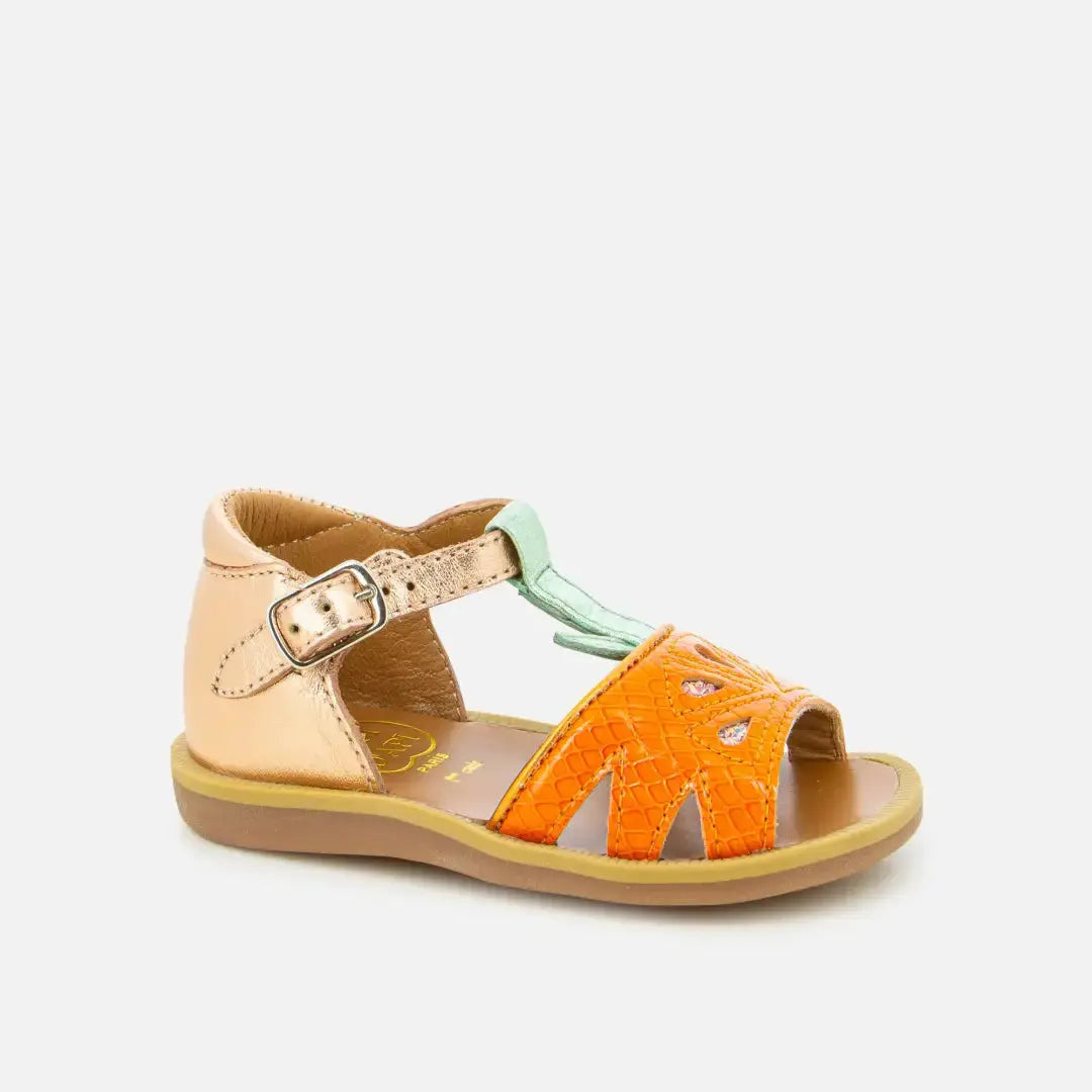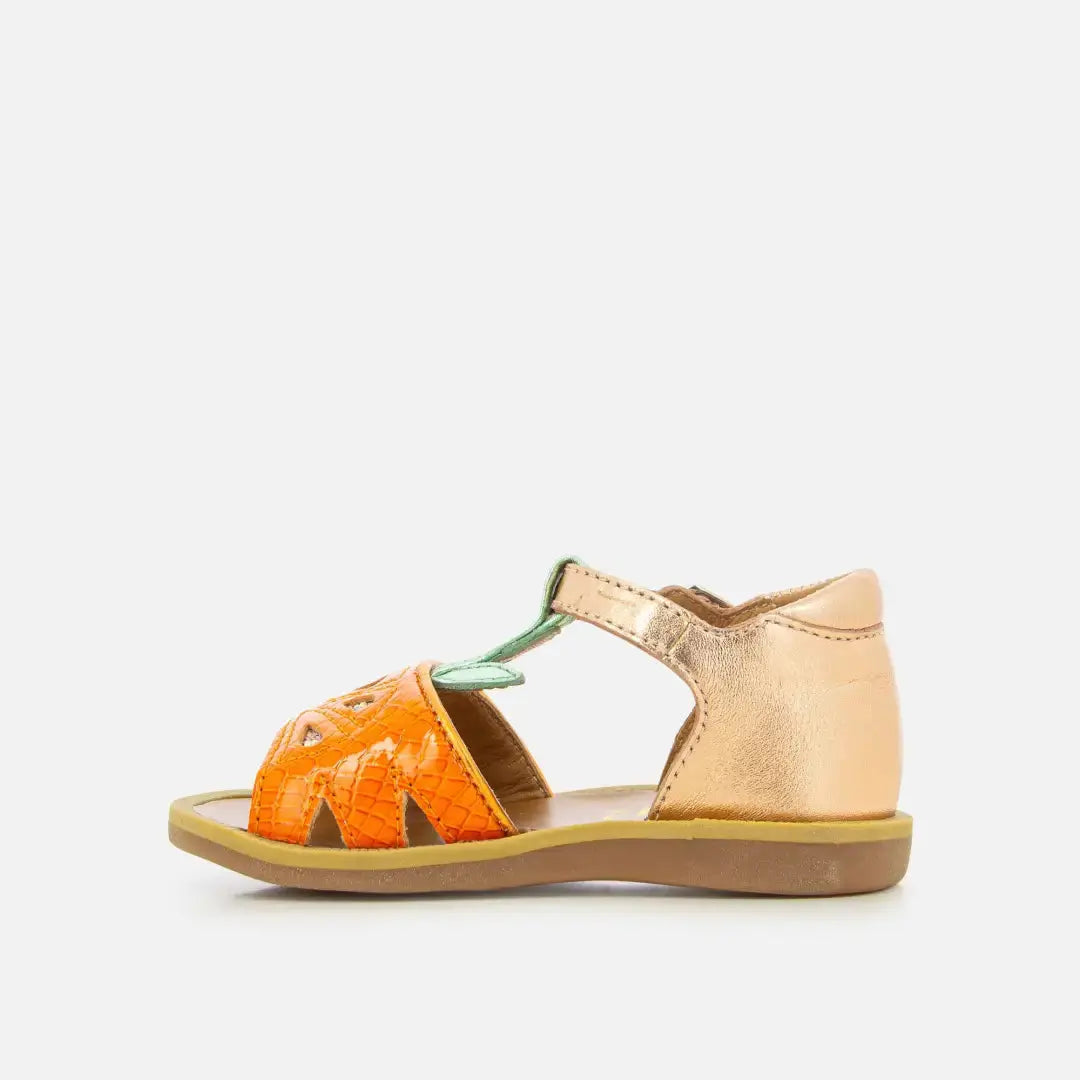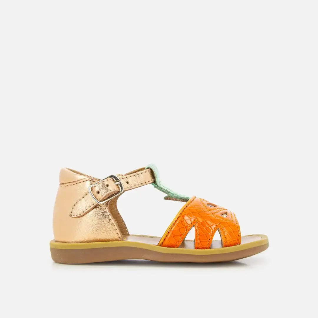 Cette sandale premiers-pas est présentée dans une version en cuir métallisé, avec un empiècement orange. Cette chaussure souple et légère est conçue avec des matériaux de qualité pour le bon développement du pied et l'apprentissage de la marche. Elle possède une tige haute pour un maintien optimal de la cheville et du cou-de-pied et Elle s'ajuste facilement à la cheville grâce à sa boucle réglable.
