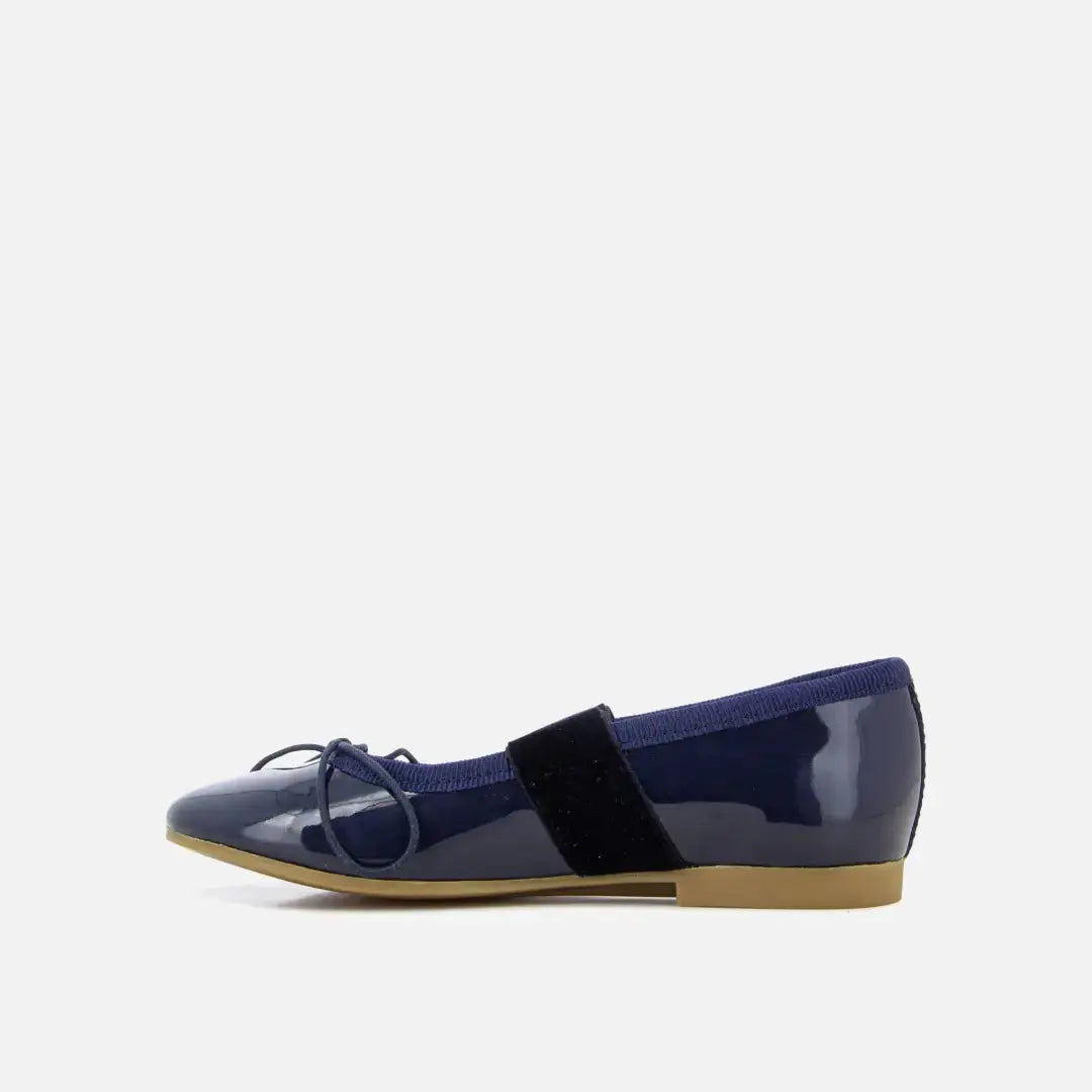 Diese Ballerina für Kinder kommt in einer Version aus marinefarbenem Glattleder. Er ist leicht und geschmeidig und wurde aus hochwertigen Materialien für die richtige Entwicklung des Fußes hergestellt. Dieser Schuh verfügt über einen Gummizug auf dem Fußrücken, der einen guten Halt ermöglicht.