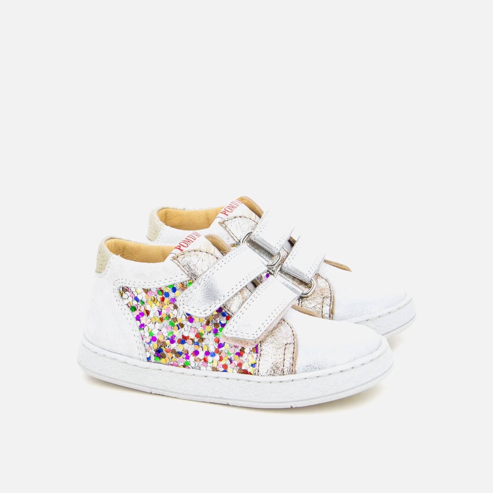 Dieser Sneaker aus der Athlet’s-Kollektion von Pom d’Api kombiniert Farben und Leder auf stilvolle Weise. Er ist komplett aus Leder gefertigt und verfügt über zwei Klettverschlüsse für einfaches Anziehen und schnelle Anpassung. Seine flexible Sohle begleitet jede Bewegung mit Leichtigkeit, während die herausnehmbare Latex-Einlegesohle im Alltag weichen Tragekomfort bietet und eine einfache Pflege ermöglicht. Er ist für kleine Schuhgrößen geeignet und hier in einer schönen Mischung aus Farben und Materialien erhältlich.