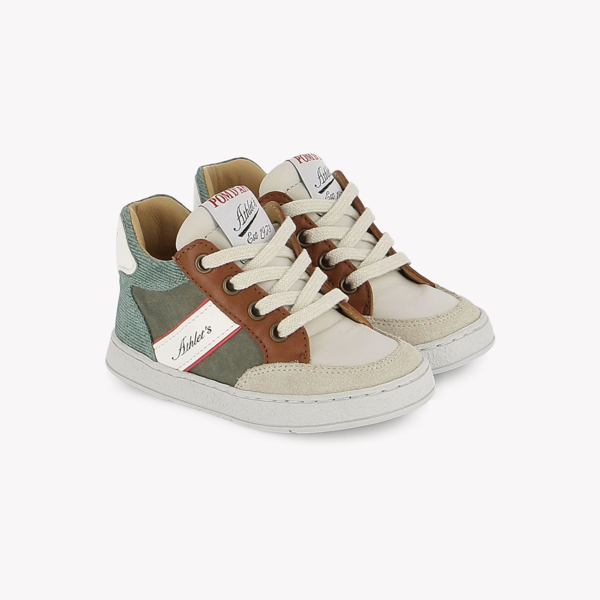 Dieser Sneaker aus der Athlet’s Pom d'Api -Kollektion Pom d'Api verschiedene Farben und Lederarten. Er ist komplett aus Leder gefertigt und verfügt über Schnürsenkel und einen Reißverschluss an der Innenseite, damit er schnell und einfach selbstständig angezogen werden kann.