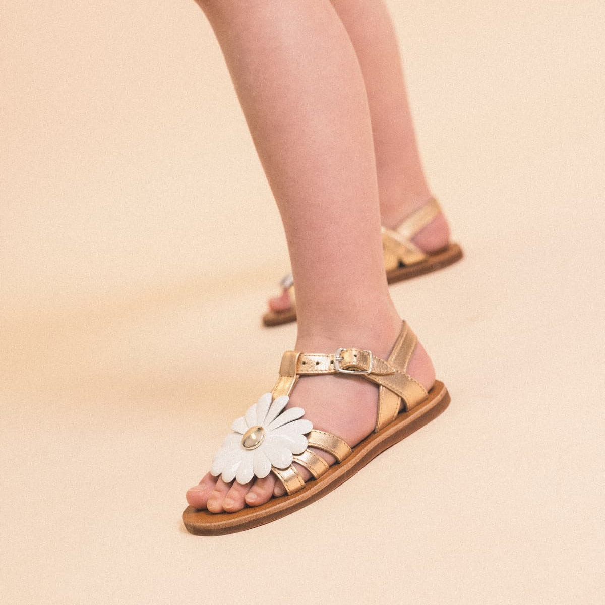 Mit ihrem großen Blumenapplikation ist Plagette Big Flo eines der Kultmodelle des Sommers bei Pom d'Api. Saison für Saison erfindet sich die Plagette-Linie mit neuen Designs und sorgfältig ausgewählten Ledersorten neu. Diese zeitlose und unverwechselbare Sandale ist auf Langlebigkeit ausgelegt. Dank ihres Obermaterials und Futters aus Leder bietet sie dauerhaften Komfort und einwandfreie Qualität. Ihre Innensohle aus Leder sorgt für eine natürliche Passform und Atmungsaktivität, ideal für Kinder den ganzen Sommer über. Die Gummisohle vereint Flexibilität und Festigkeit und ist sowohl biegsam als auch widerstandsfähig, während das hohe Obermaterial aus Leder und die verschweißte Montage einen hervorragenden Halt und eine lange Lebensdauer garantieren. Dank ihres Schnallenverschlusses lässt sich diese Sandale leicht anziehen und passt sich perfekt an den Fuß an, sodass sie einfach anzuziehen ist und jeden Tag optimalen Komfort bietet.