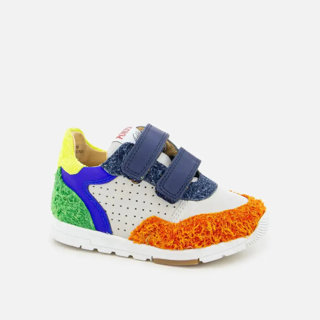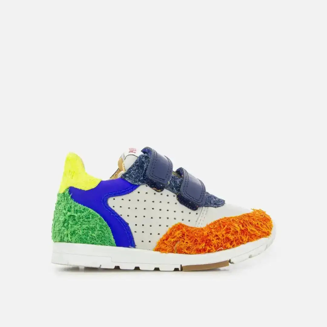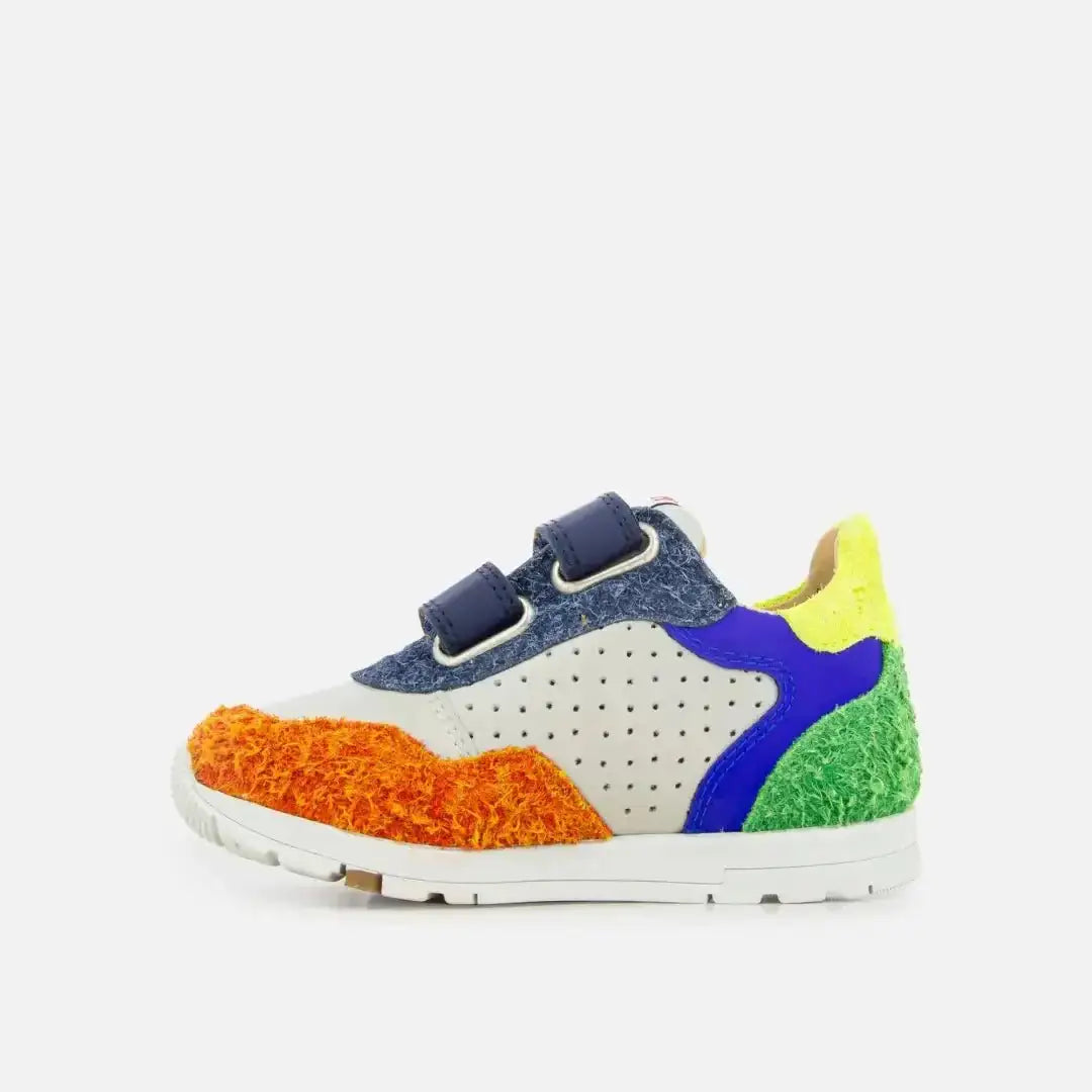 Dieser Sneaker für Kinder kommt in einer Bi-Material-Version aus mehrfarbigem Glattleder und Textil mit Perforationen. Dieser weiche und leichte Schuh wurde mit hochwertigen Materialien für die richtige Entwicklung des Fußes entworfen. Er lässt sich mithilfe von Klettverschlüssen leicht an den Knöchel und den Rist anpassen.