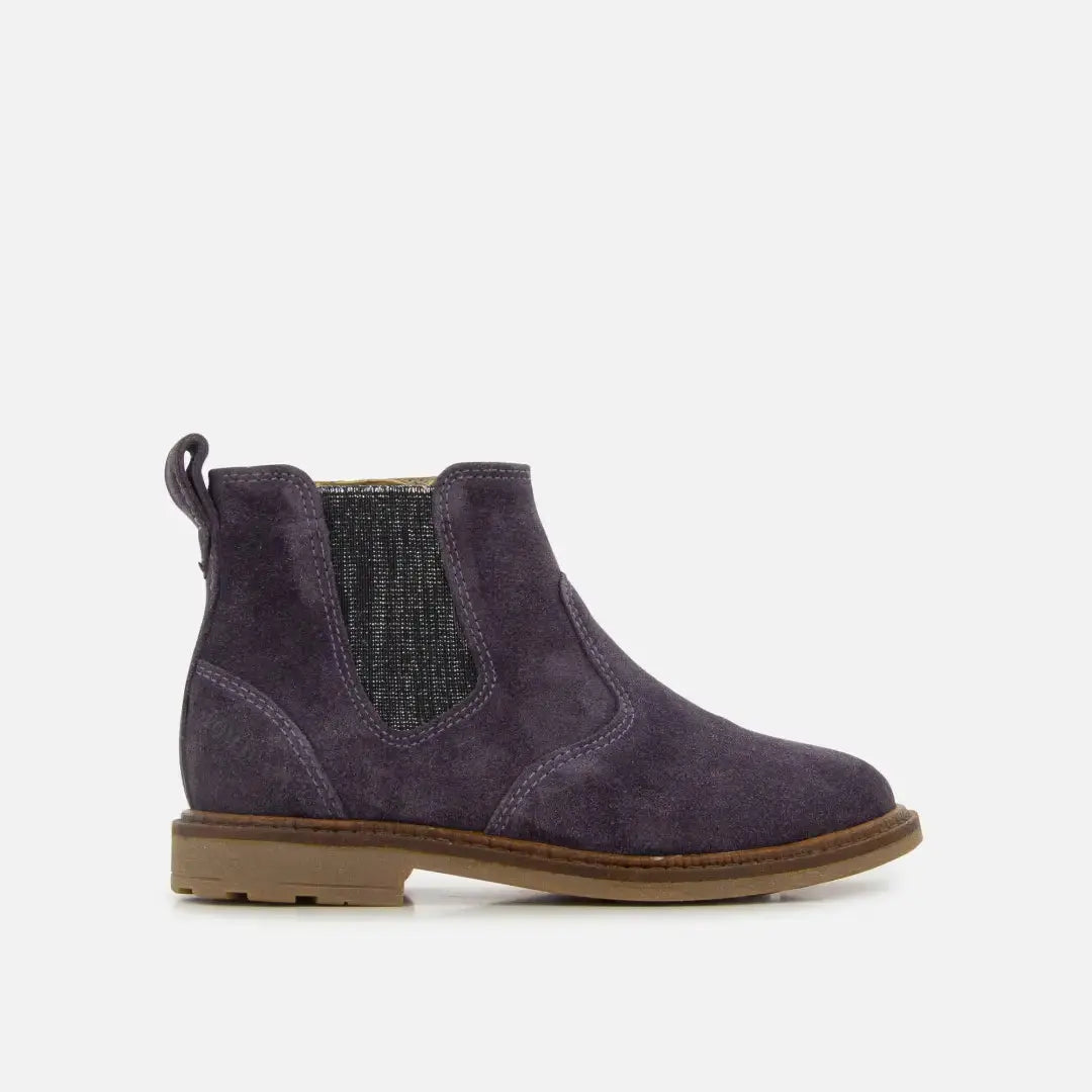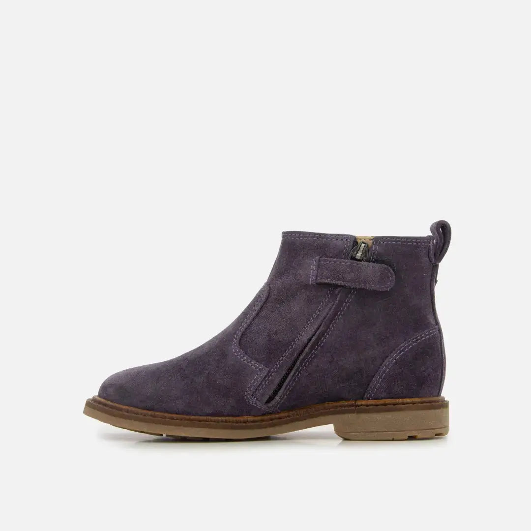 Diese Stiefelette für Kinder kommt in einer Version aus violettem Veloursleder mit einem elastischen Einsatz. Sie ist leicht und geschmeidig und wurde aus hochwertigen Materialien für die richtige Entwicklung des Fußes hergestellt. Der Schuh hat einen hohen Schaft, um Knöchel und Rist optimal zu stützen, und ist dank des Reißverschlusses an der Innenseite leicht anzuziehen.
