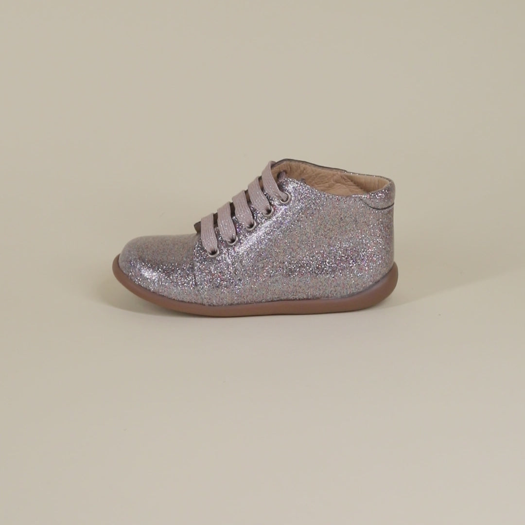 Dieser Erstlingsschuh mit Schnürsenkeln für Kinder kommt in einer Version aus Leder mit Blumenprint in Goldmetallic. Der Schuh ist leicht, hat eine Gummisohle und wurde mit hochwertigen Materialien für eine gesunde Entwicklung des Fußes hergestellt. Eine Anti-Twist-Verstärkung im hinteren Teil des Schuhs sorgt für optimalen Halt und Stabilität und bietet gleichzeitig Flexibilität im Vorfußbereich.