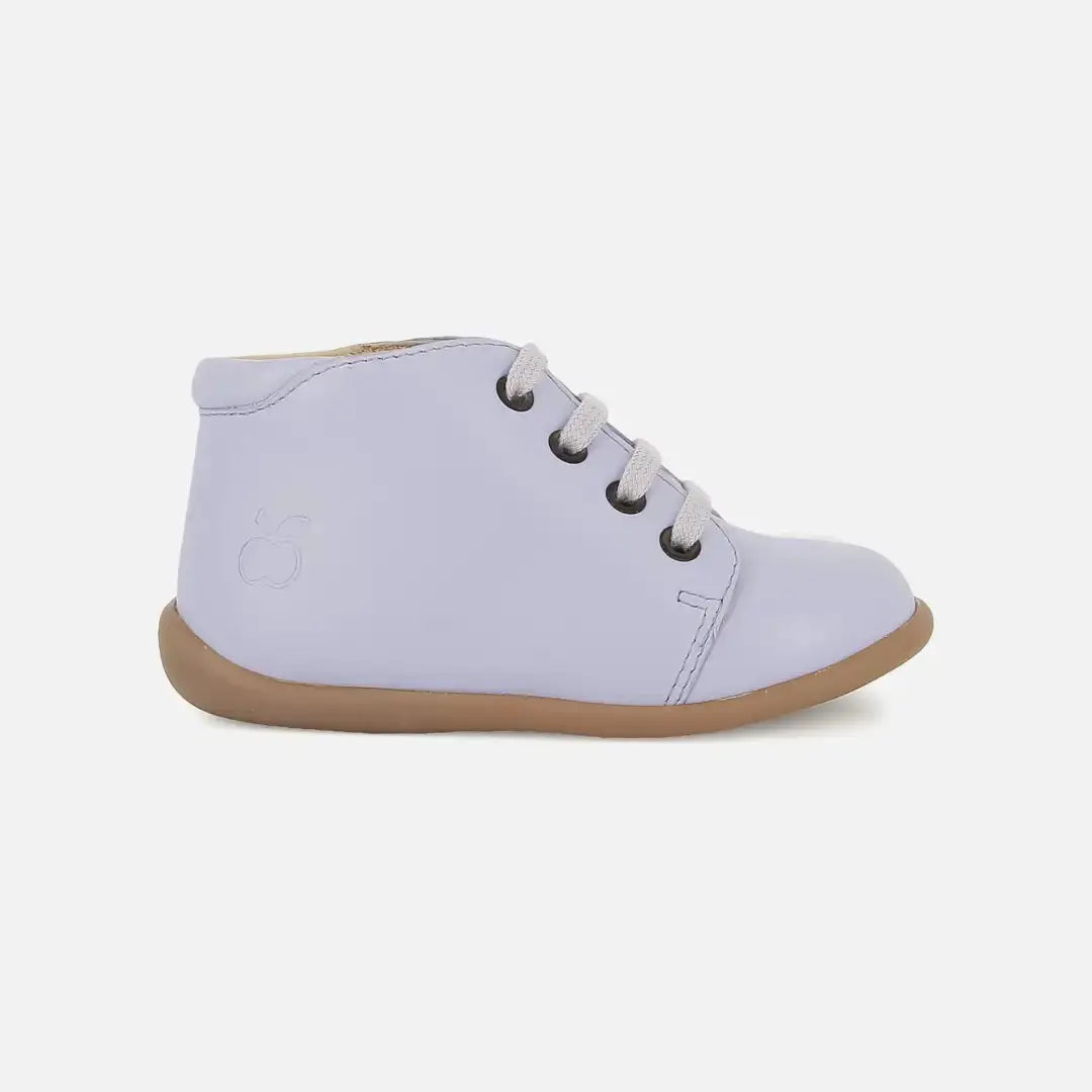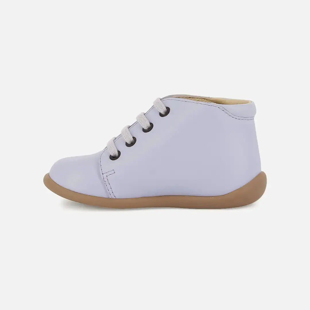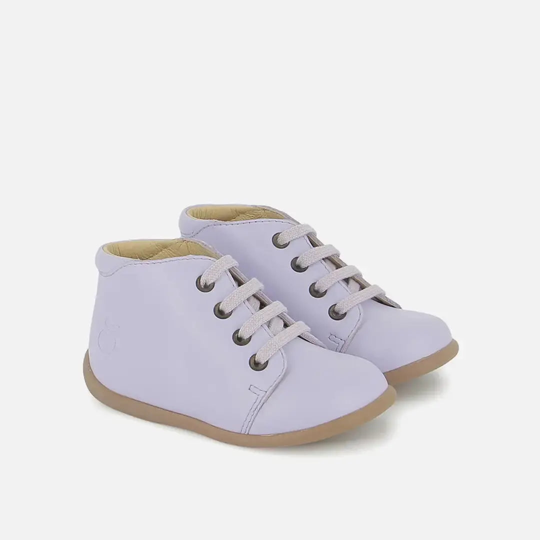 Dieser Erstlingsschuh mit Schnürsenkeln für Kinder kommt in einer Version aus violettem Glattleder daher. Dieser leichte Schuh mit Gummisohle wurde aus hochwertigen Materialien gefertigt, die eine gesunde Entwicklung des Fußes fördern. Eine Anti-Twist-Verstärkung im hinteren Teil des Schuhs sorgt für optimalen Halt und Stabilität und bietet gleichzeitig Flexibilität im Vorfußbereich.