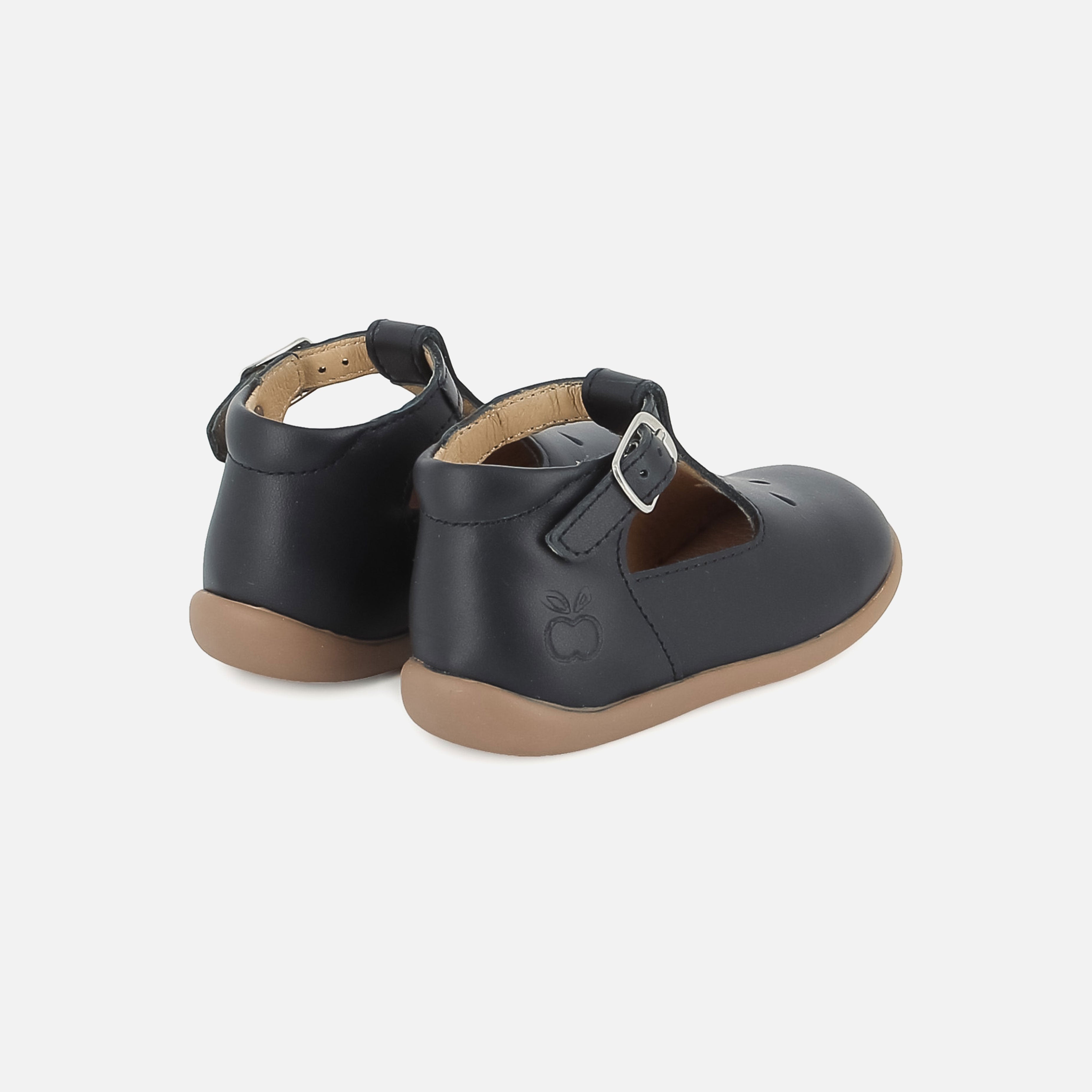 Diese Erstlings-Salome kommt in einer Version aus marineblauem Glattleder mit Perforationen an der Vorderseite. Der Schuh ist leicht und mit einer Gummisohle ausgestattet. Er wurde mit hochwertigen Materialien für die richtige Entwicklung des Fußes hergestellt. Eine Anti-Twist-Verstärkung im hinteren Teil des Schuhs sorgt für optimalen Halt und Stabilität und bietet gleichzeitig Flexibilität im Vorfußbereich. Der Schuh lässt sich dank der verstellbaren Schnalle am Knöchel leicht an den Knöchel anpassen.