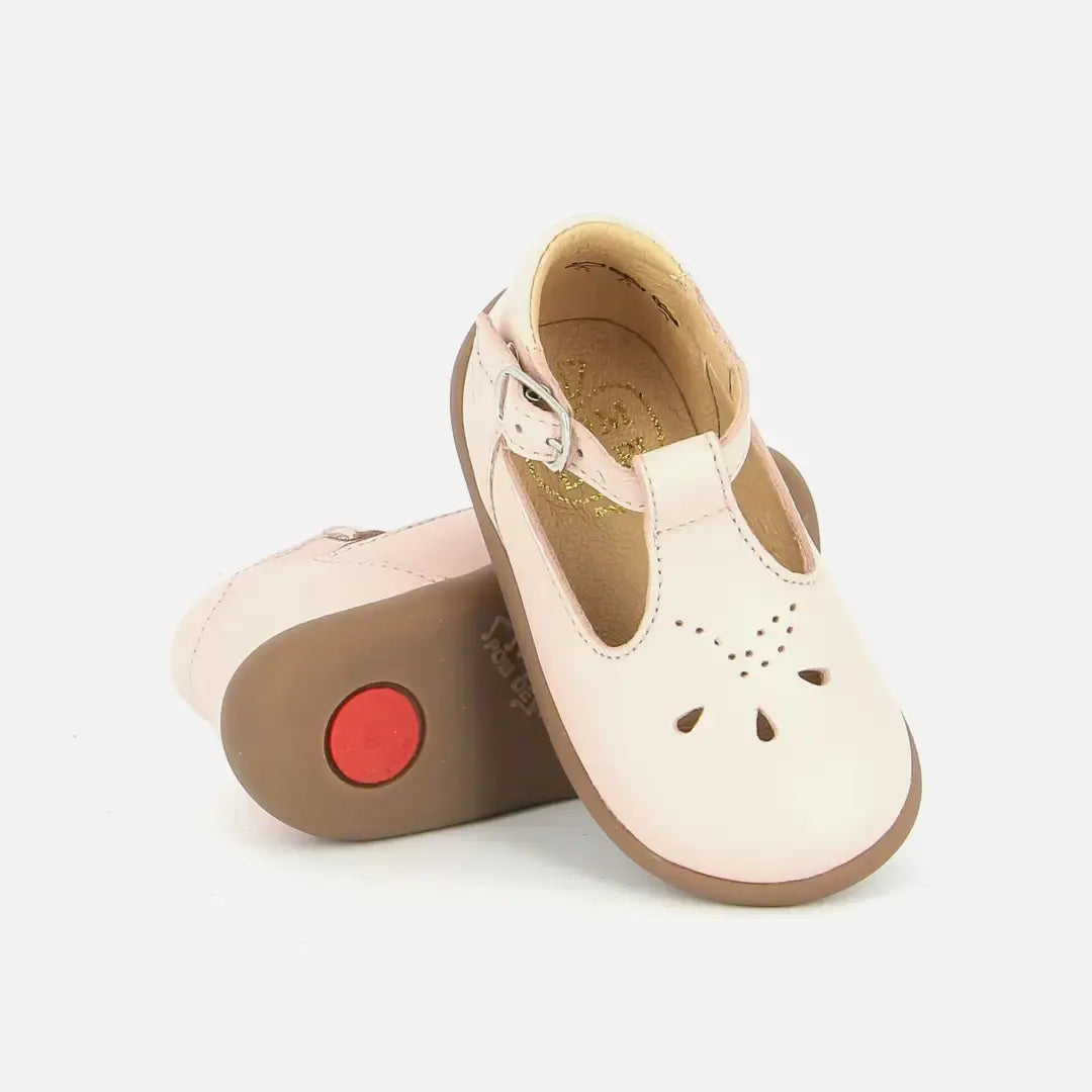 Die ersten Schritte des Babys verdienen einen passenden Schuh. Deshalb haben wir „Stand Up“ entwickelt, ein Modell, das exklusiv in unserem Designbüro in der Vendée entworfen und entwickelt wurde und das einzigartige Know-how von Pom d’Api im Bereich der ersten Schritte widerspiegelt. Stand Up Salomé ist vom halbgeschlossenen „Salomé“-Modell inspiriert und vereint Eleganz mit technischer Raffinesse: Er ist mit einer flexiblen, rutschfesten Gummisohle und einem patentierten Anti-Twist©-Schaft ausgestattet, der im Fersenbereich integriert ist, um Verdrehungen des Knöchels zu verhindern und gleichzeitig eine hohe Flexibilität im Vorderfußbereich zu gewährleisten. Dieser Schuh ist aus sorgfältig ausgewähltem Premium-Leder gefertigt und lässt sich dank seiner verstellbaren Schnalle leicht am Knöchel anpassen.