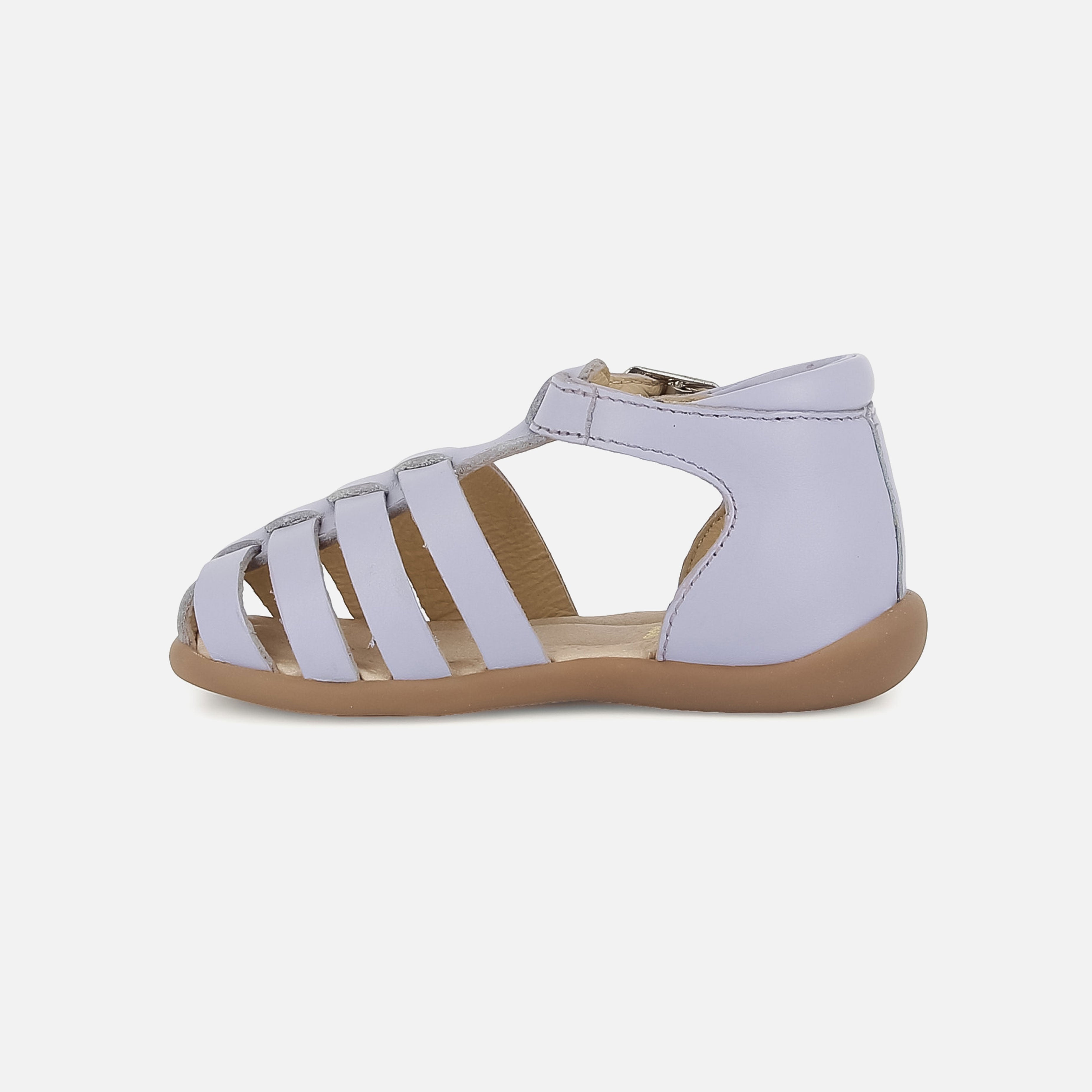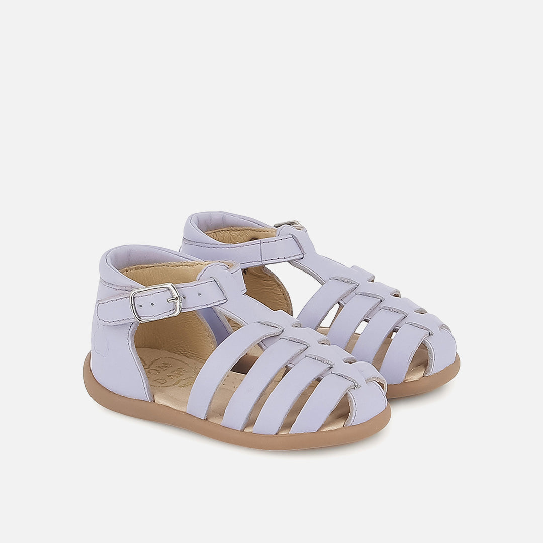 Diese Erstlingssandale kommt in einer Version aus violettem Glattleder. Der leichte Schuh mit Gummisohle wurde aus hochwertigen Materialien gefertigt, die eine gesunde Entwicklung des Fußes fördern. Eine Anti-Twist-Verstärkung im hinteren Teil des Schuhs sorgt für optimalen Halt und Stabilität und bietet gleichzeitig Flexibilität im Vorfußbereich. Der Schuh lässt sich dank der verstellbaren Schnalle am Knöchel leicht an den Knöchel anpassen.