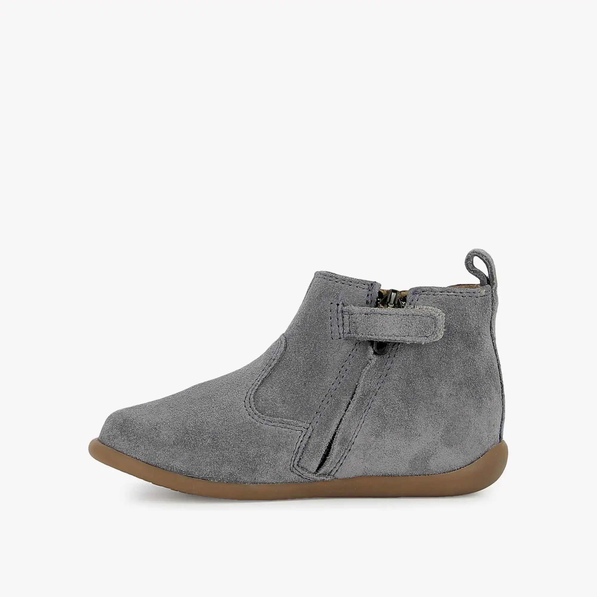 Dieses System verhindert ein Umknicken des Knöchels, während der Vorderfuß flexibel bleibt. Hier in Silber und ganz aus Leder gefertigt, vereint er Eleganz und Technik, um die ersten Schritte zu begleiten.