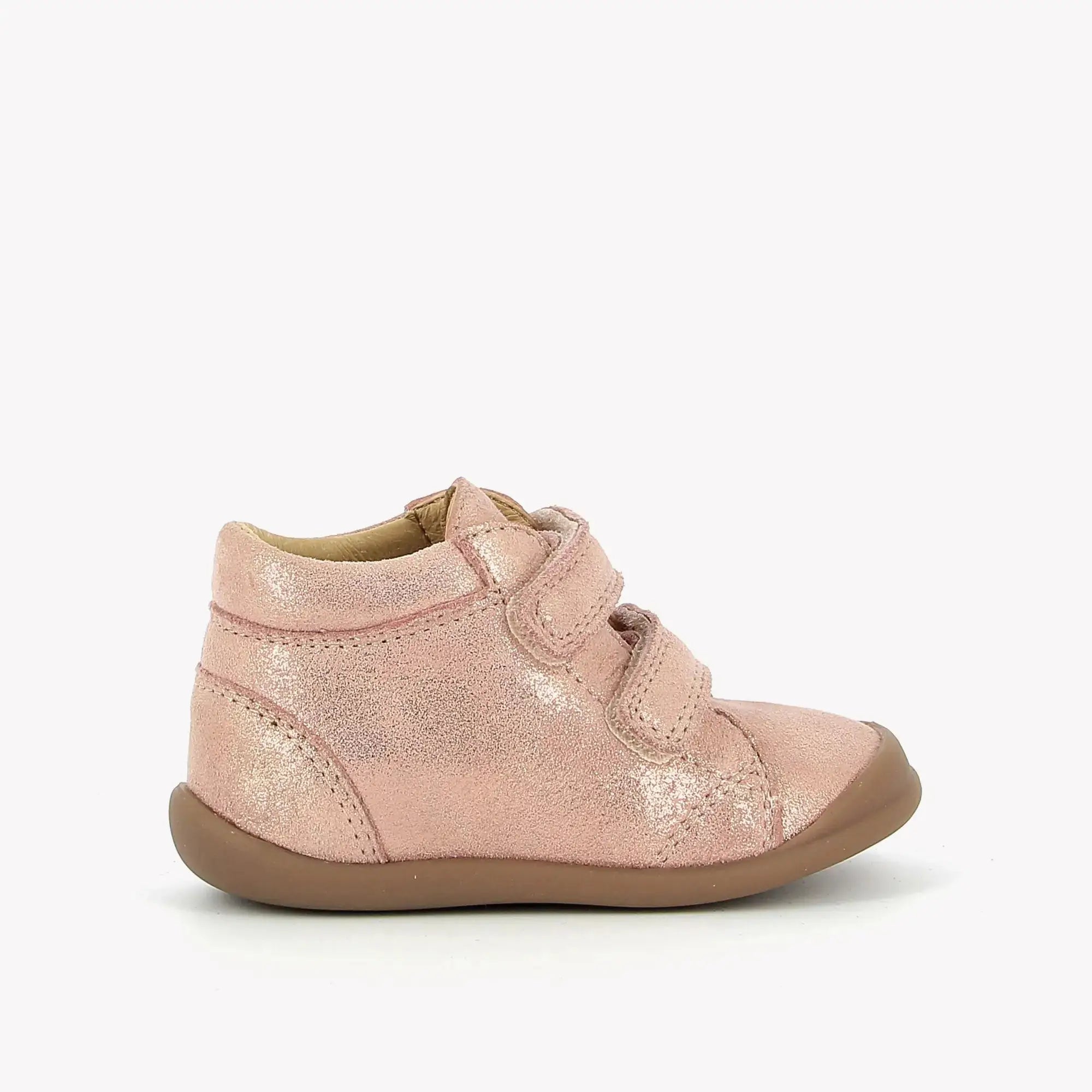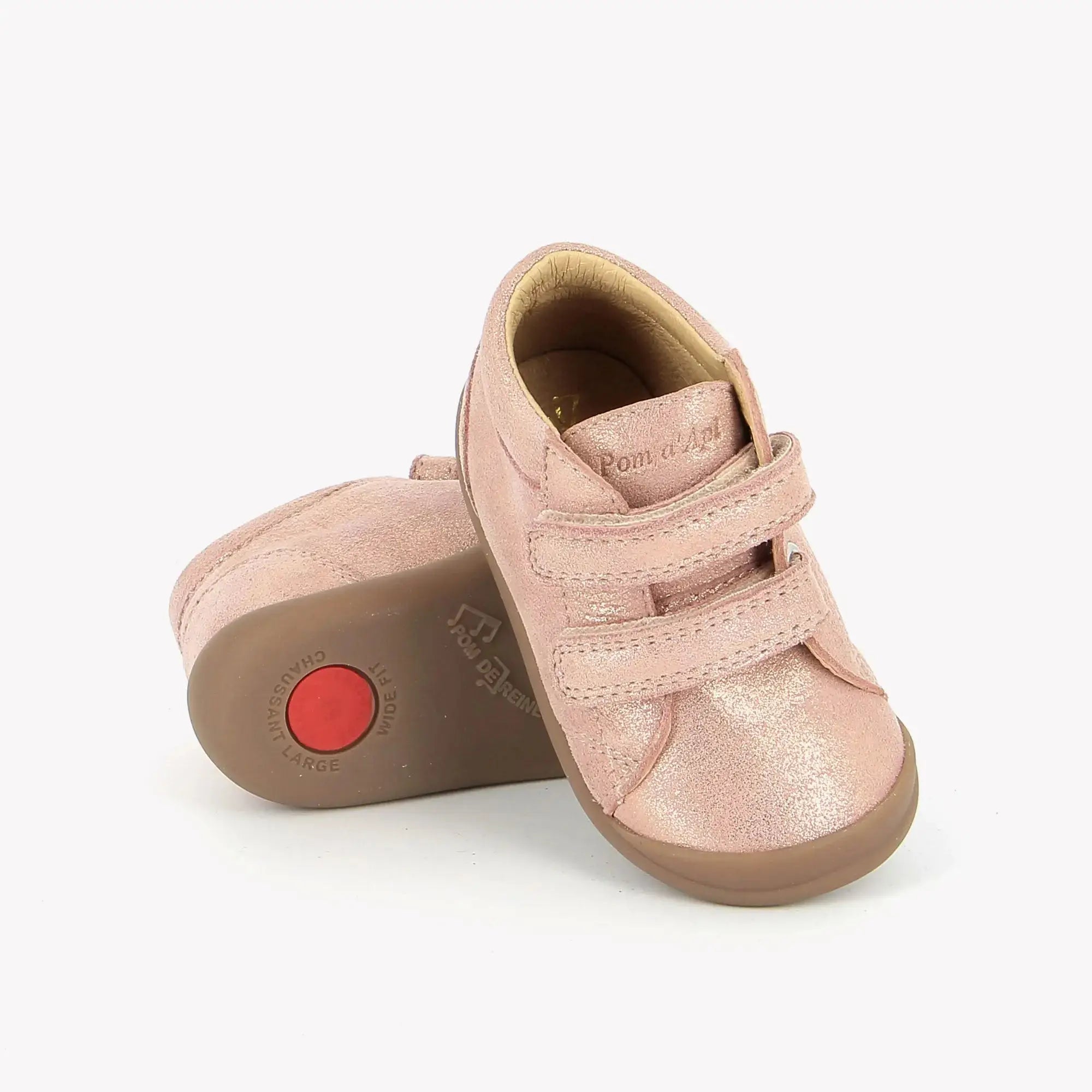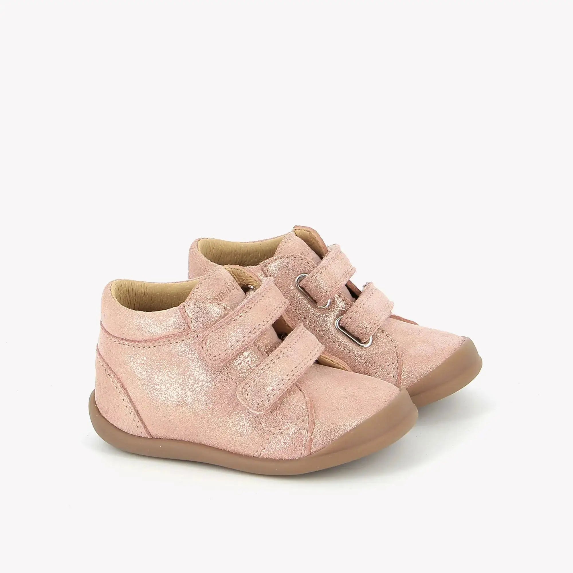 Dieser Erstlingsschuh präsentiert sich in Glattleder und hat einen Klettverschluss, der das Anziehen erleichtert. Die Einlegesohle aus Leder sorgt für eine angenehme Passform.