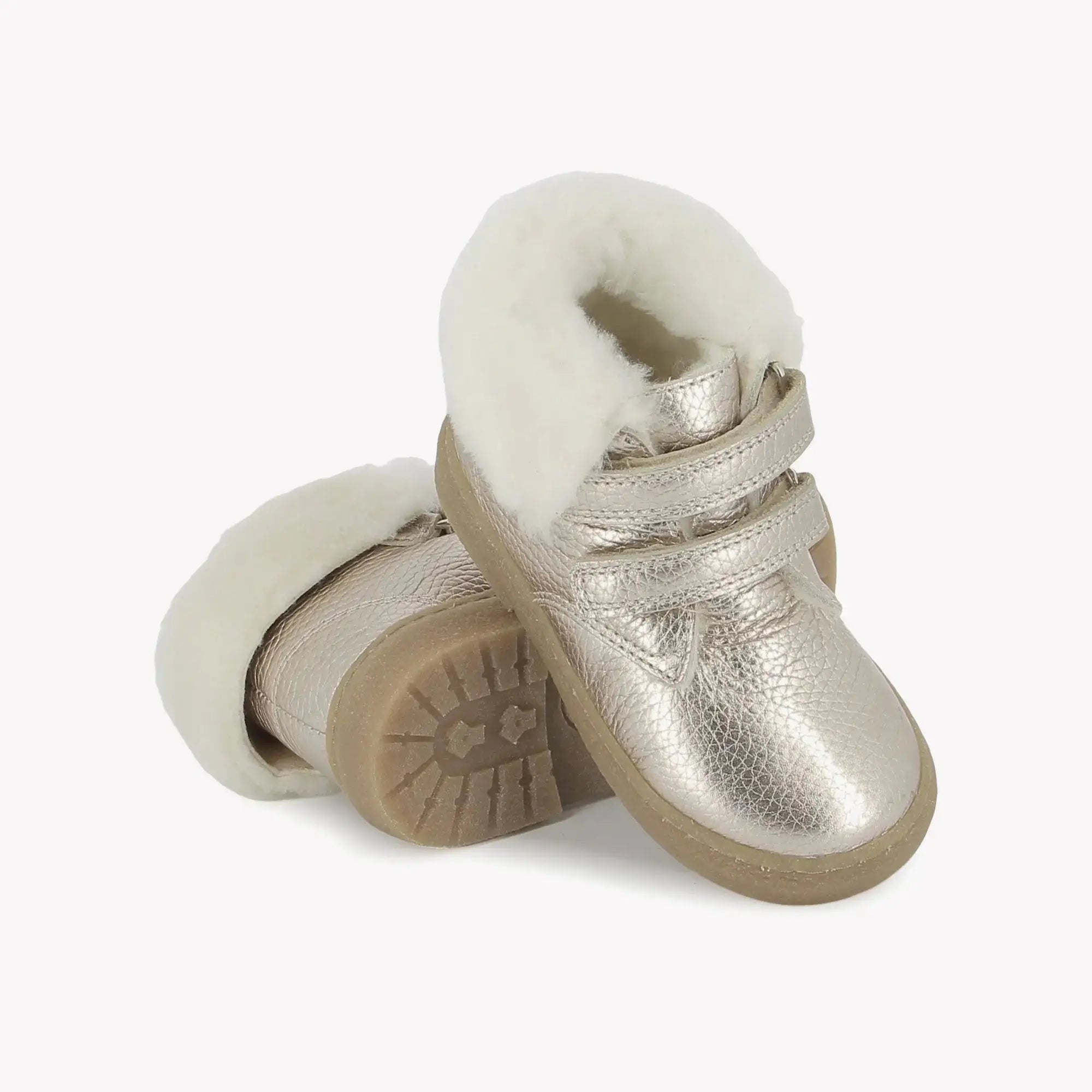 Dieser Schuh aus goldfarbenem Metallic-Leder lässt sich mithilfe von zwei Klettverschlüssen leicht anpassen und anziehen. Er hat einen Kragen und ein synthetisches Innenfutter. Der hohe Schaft sorgt für eine gute Unterstützung des Knöchels.