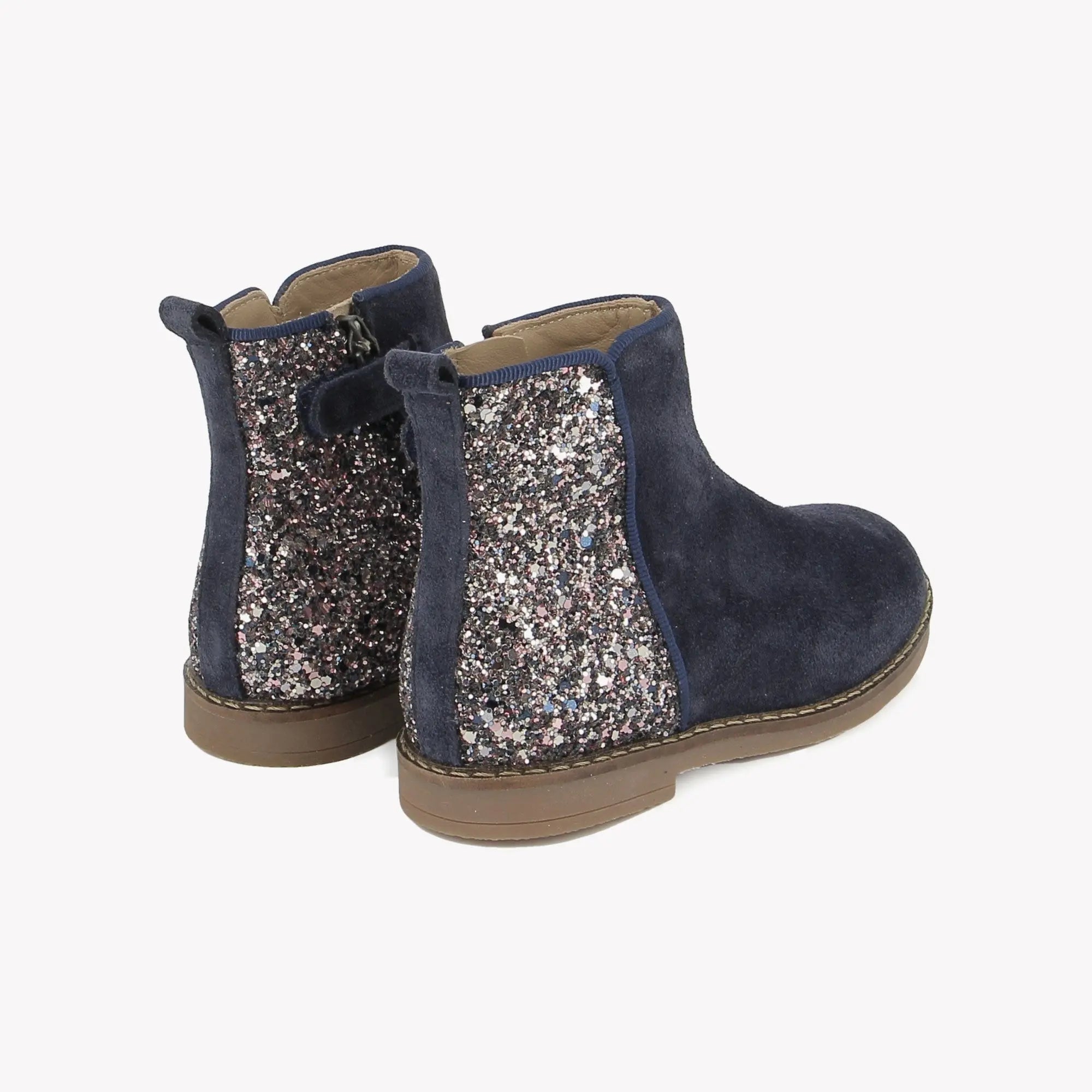 Diese Stiefelette aus marineblauem Veloursleder lässt sich dank eines praktischen Reißverschlusses an der Innenseite leicht anpassen.