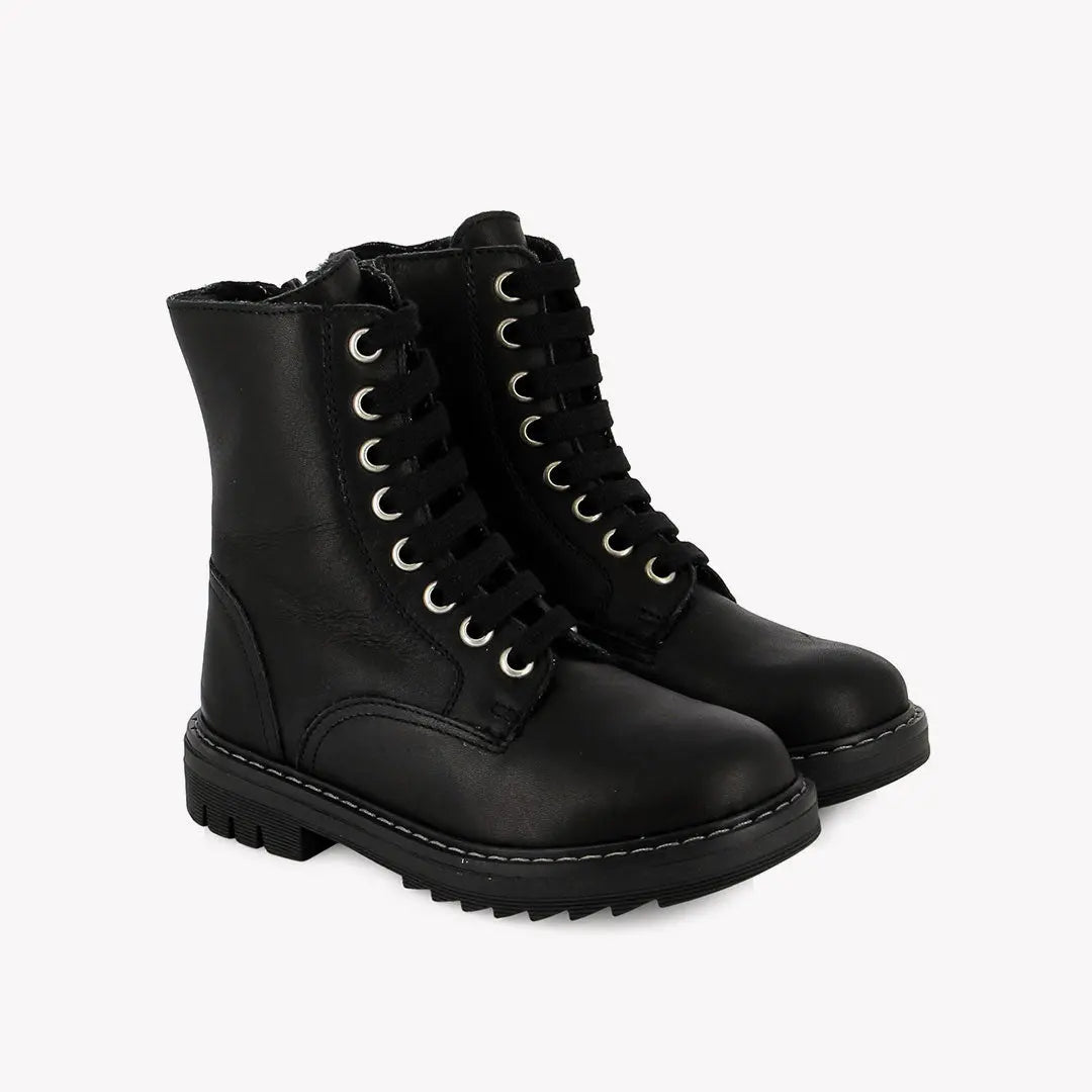 Diese schwarze Stiefelette aus Glattleder ist vom Ranger-Stil inspiriert und verfügt über einen Schnürverschluss und einen Reißverschluss an der Innenseite, um das Anziehen zu erleichtern. Die rutschfeste, gezackte Sohle bietet einen hervorragenden Grip. Das Synthetikfutter sorgt für eine optimale Isolierung gegen Kälte und die Lederbrandsohle für eine angenehme Passform. Hier in schwarzem Leder erhältlich, vereint er Stil, Komfort und Strapazierfähigkeit.