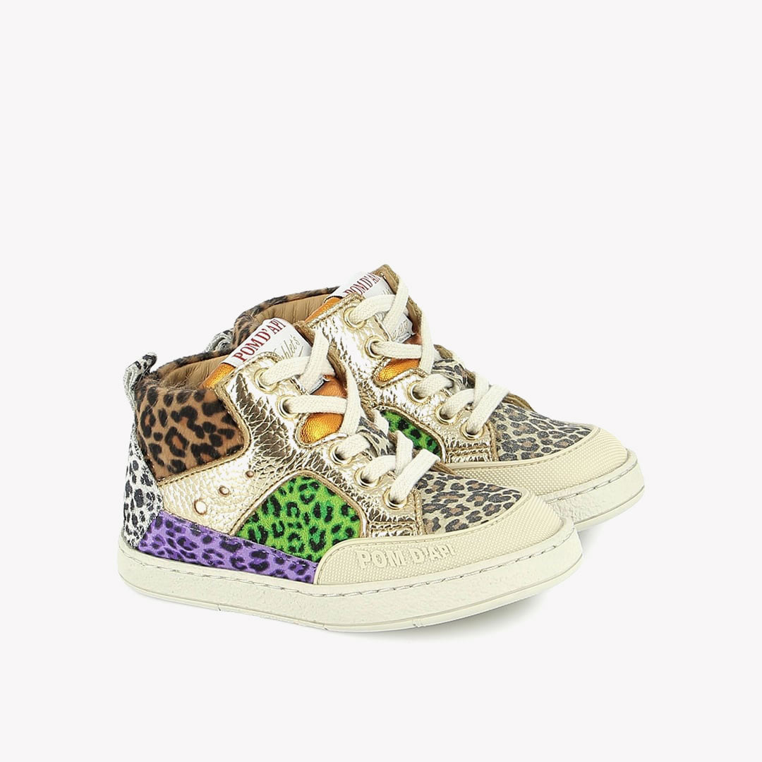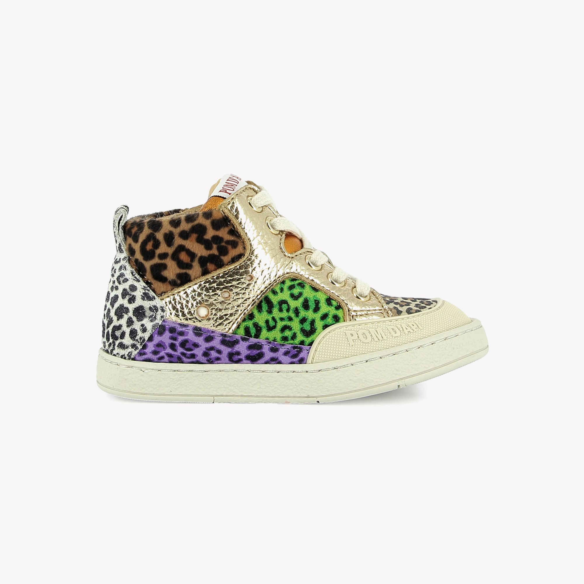 Der Schuh ist für kleine Größen geeignet und wird hier in einem schönen Farb- und Materialmix angeboten: aus Metallic-Leder und Veloursleder mit Leopardenmuster. Die individuell geformte Vorderkappe bietet zusätzlichen Schutz für den Schuh.