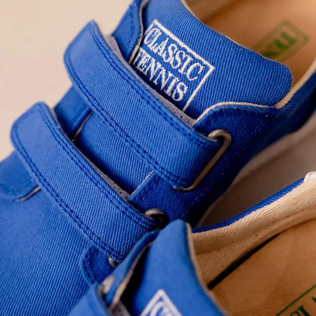 Dieser Kindersneaker ist in einer blauen Canvas-Version erhältlich.