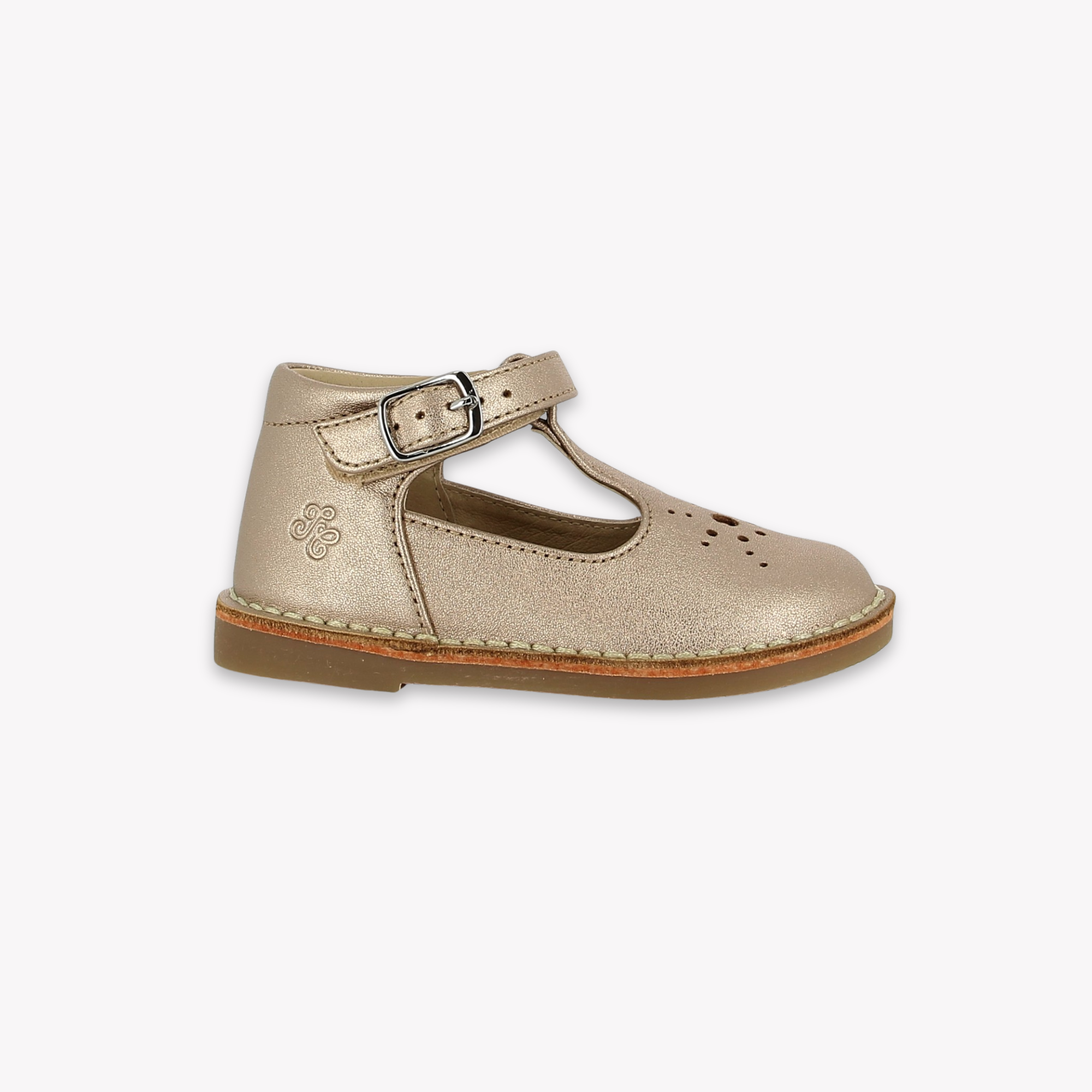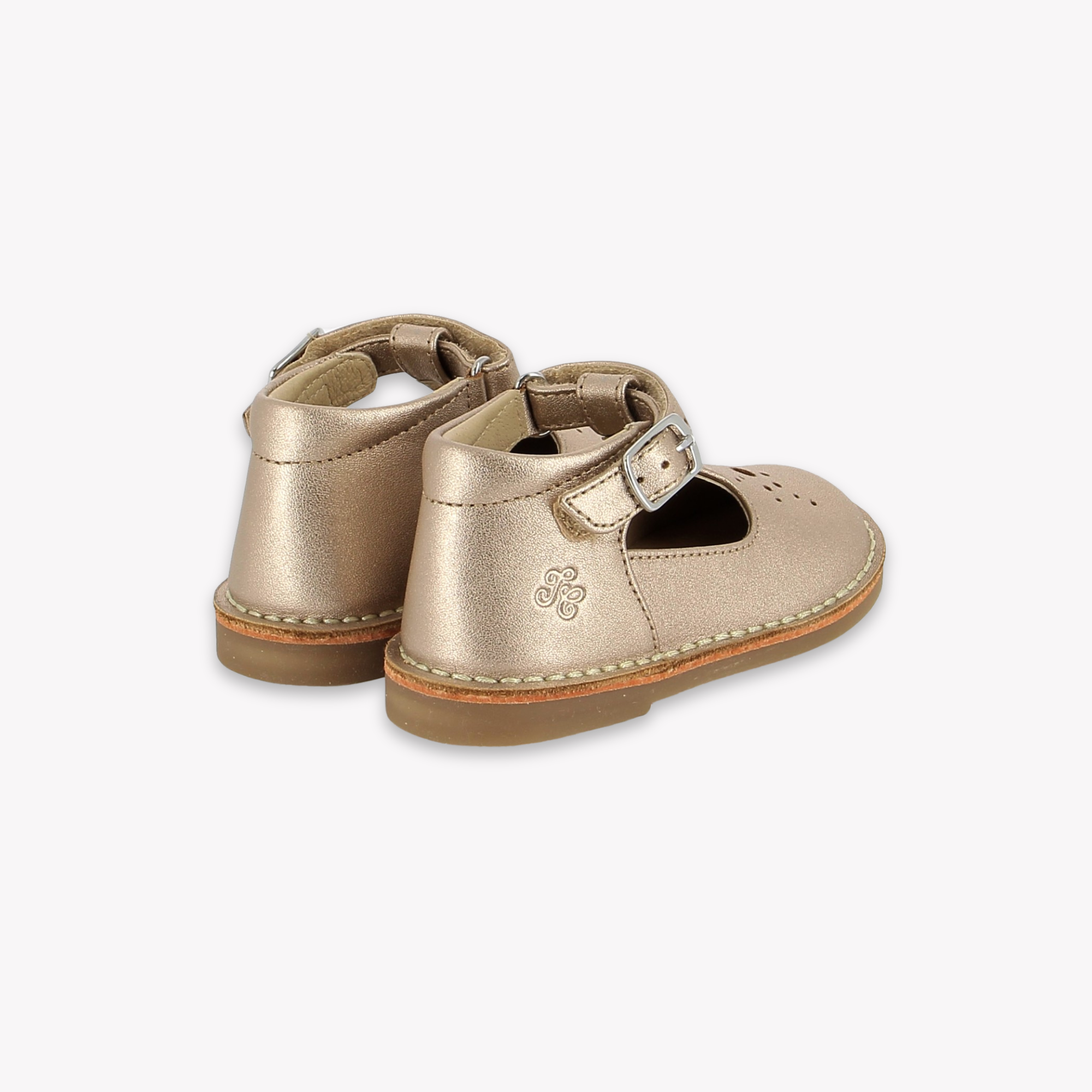 Diese Salomé-Schuhe sind das Ergebnis unserer Partnerschaft mit der renommierten französischen Kindermodemarke Tartine et Chocolat. Sie sind zart und werden durch einen Salomé-Riemen für einen eleganten Look unterstrichen. Sie werden nach einer traditionellen Methode namens „Cousu Sandalette” hergestellt, bei der das Leder nach außen umgeschlagen und dann mit einer Zwischensohle vernäht wird, wodurch der Schuh sehr flexibel ist.