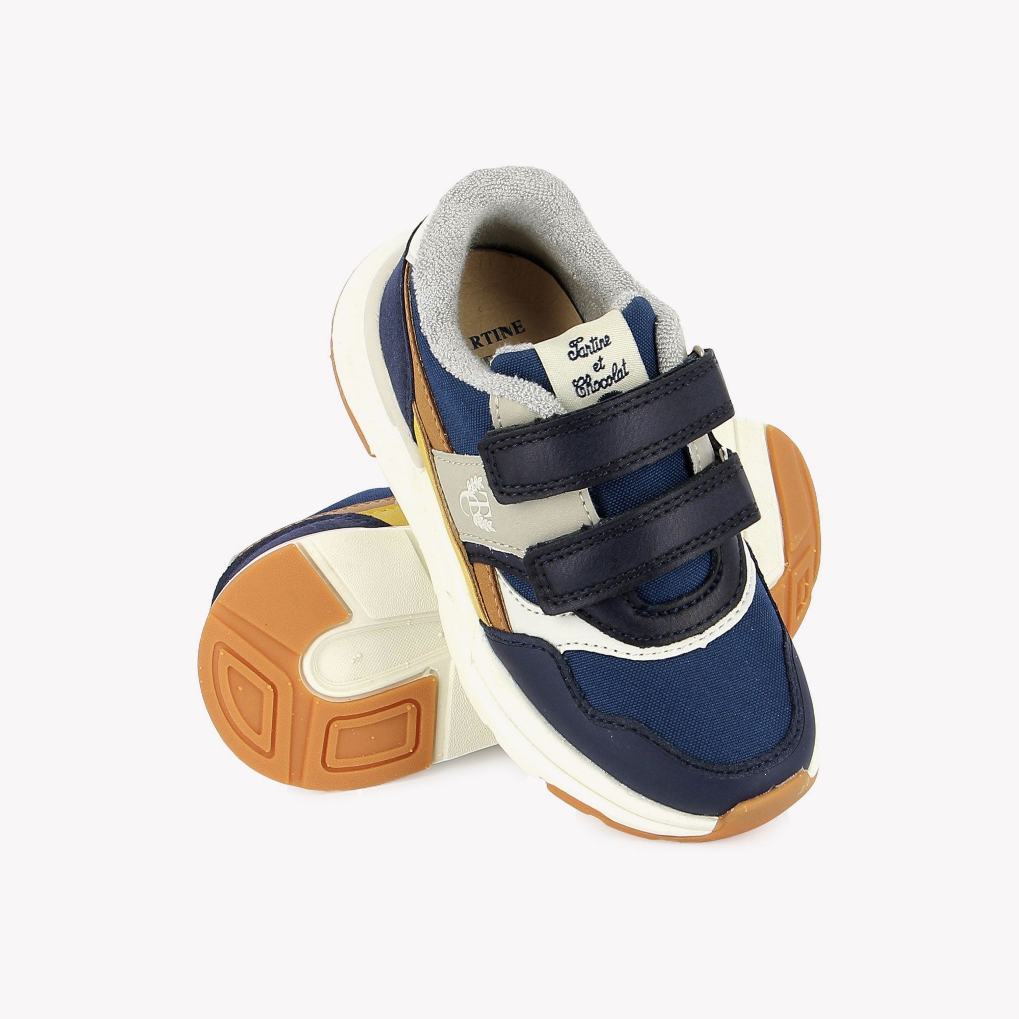 Ces baskets au style jogger sont issues de notre partenariat avec la prestigieuse marque française de mode enfantine, Tartine et Chocolat. Elles sont idéales pour accompagner les enfants au quotidien.