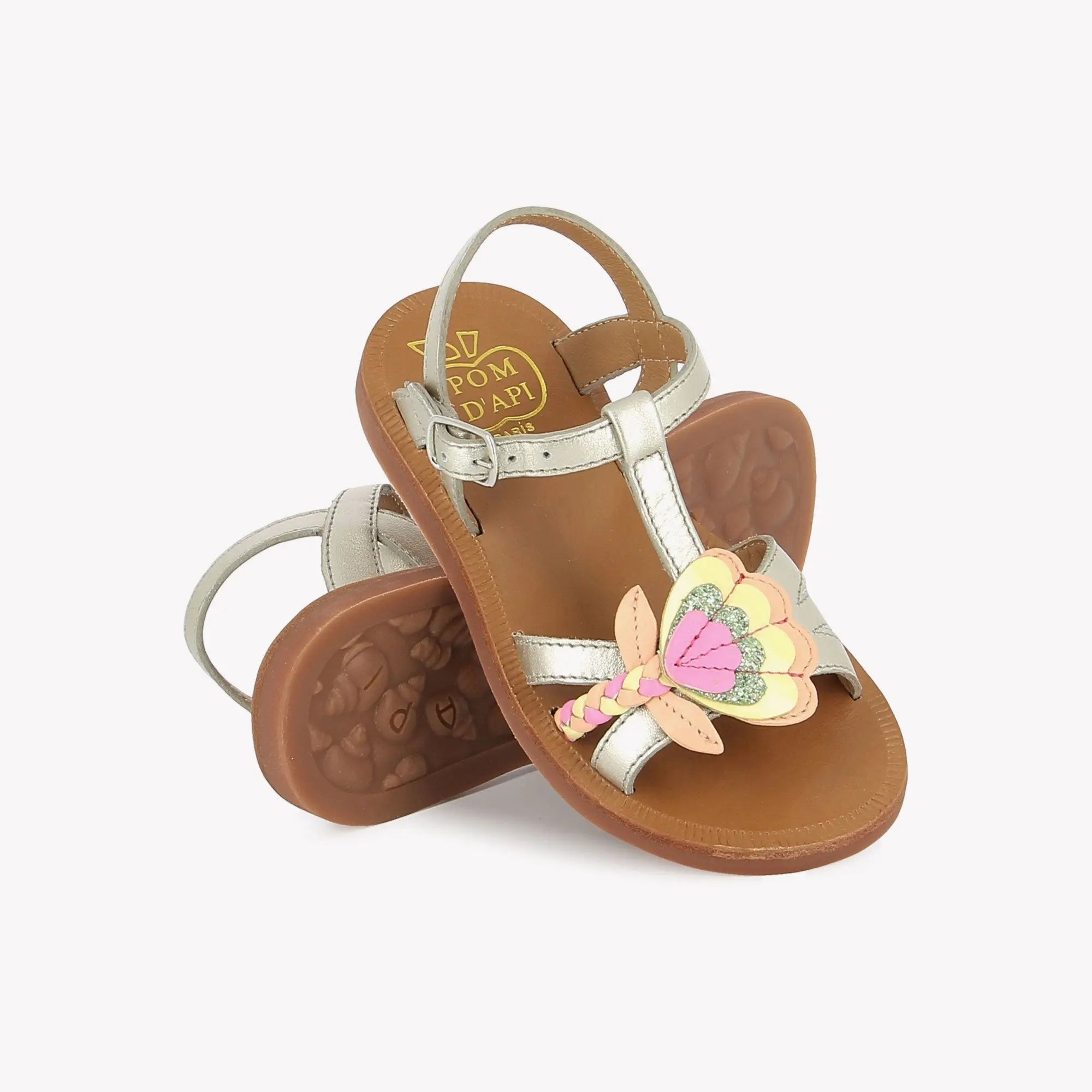 Plagette is a true summer staple at Pom d'Api. Season after season, it reinvents itself with new designs and carefully selected leathers. Timeless and iconic, this sandal is built to last. With its leather upper and lining, it offers lasting comfort and impeccable quality. Its leather insole ensures a natural and breathable fit, ideal for children all summer long. Combining flexibility and strength, the rubber sole is both flexible and durable, while the high leather upper and welded assembly guarantee excellent support and durability over time. Easy to slip on thanks to its buckle closure, the Plagette fits the foot perfectly for easy wear and optimal comfort every day.