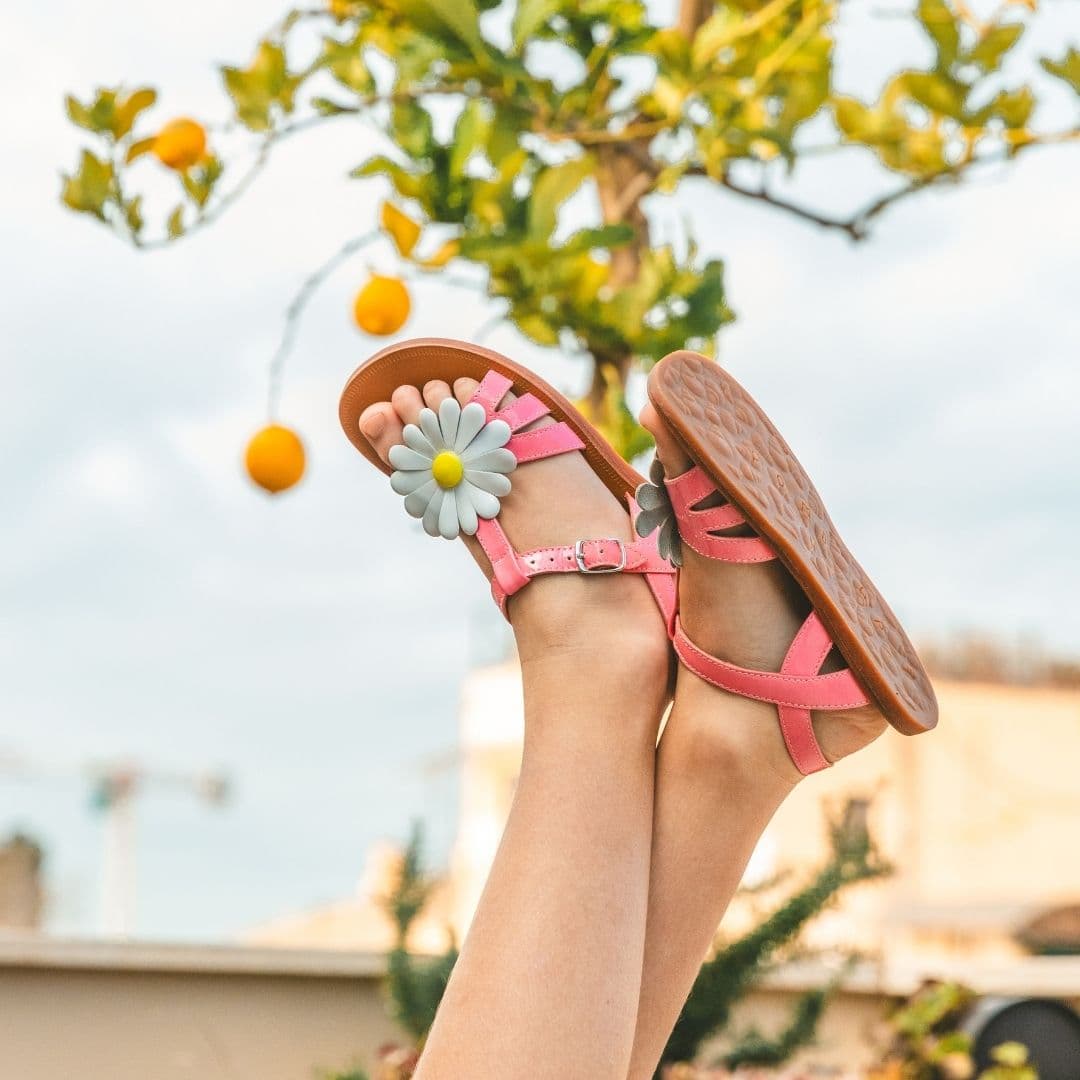 With its large floral appliqué, Plagette Big Flo is one of Pom d'Api's iconic summer styles. Season after season, the Plagette line reinvents itself with new designs and carefully selected leathers. Timeless and instantly recognizable, this sandal is built to last. Thanks to its leather upper and lining, it offers lasting comfort and impeccable quality. Its leather insole ensures a natural and breathable fit, ideal for accompanying children throughout the summer. Combining flexibility and strength, the rubber sole is both flexible and durable, while the high leather upper and welded assembly guarantee excellent support and durability over time. Easy to slip on thanks to its buckle closure, this sandal fits the foot perfectly for easy wear and optimal comfort every day.
