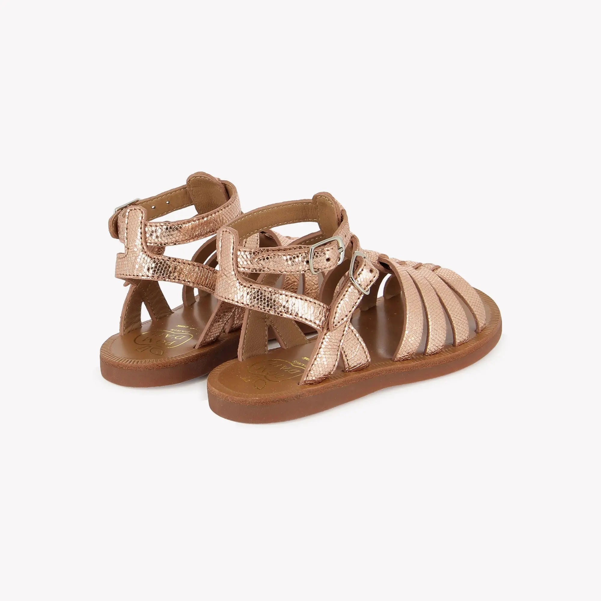 The Gladiator sandal is a true summer essential at Pom d'Api. Season after season, it reinvents itself with new designs and carefully selected leathers. Timeless and iconic, this sandal is built to last. With its leather upper and lining, it offers lasting comfort and impeccable quality. Its leather insole ensures a natural and breathable fit, ideal for children all summer long. Combining flexibility and strength, the rubber sole is both flexible and durable, while the high leather upper and welded assembly guarantee excellent support and durability over time. Easy to slip on and perfectly adjustable thanks to its adjustable ankle buckles, this sandal is ideal for narrow feet, offering easy wear and optimal comfort for everyday use.