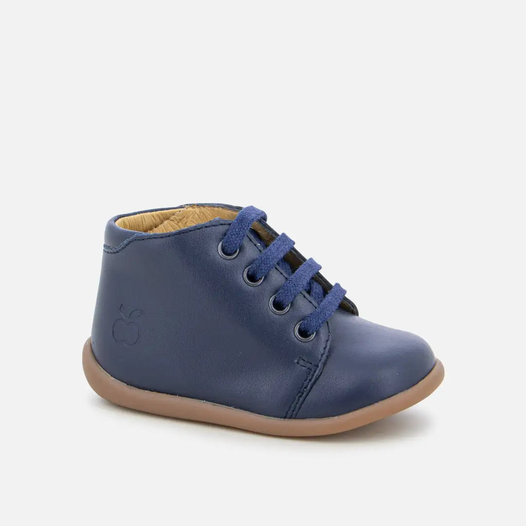 This lace-up first-step shoe for children is presented in a smooth navy-blue leather version. Lightweight and with a rubber sole, this shoe is designed with quality materials for proper foot development. An Anti-Twist reinforcement at the back of the shoe ensures optimum support and stability, while offering flexibility at the front of the foot.