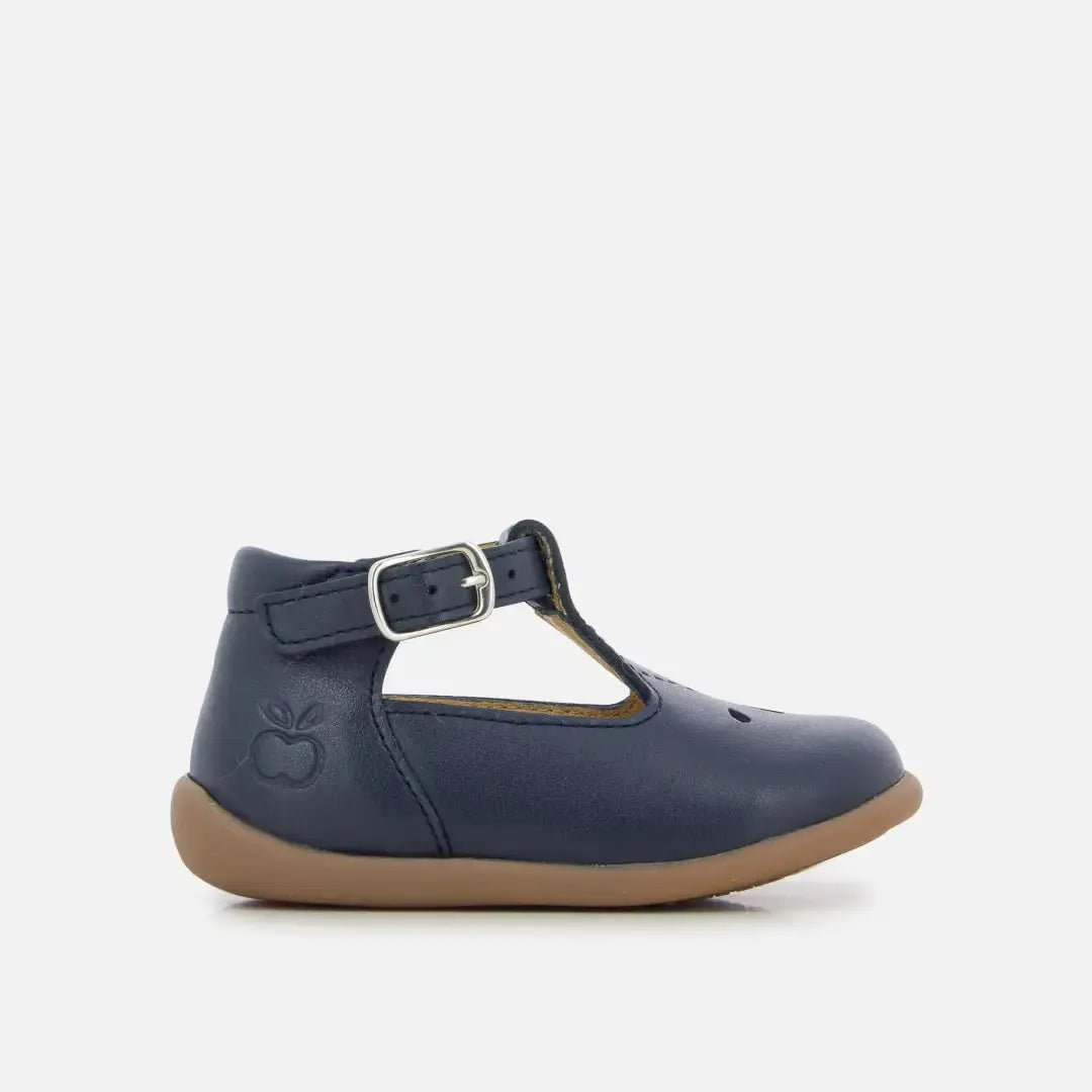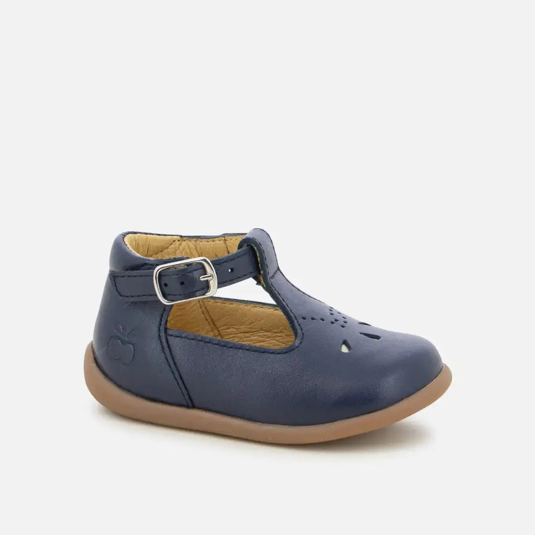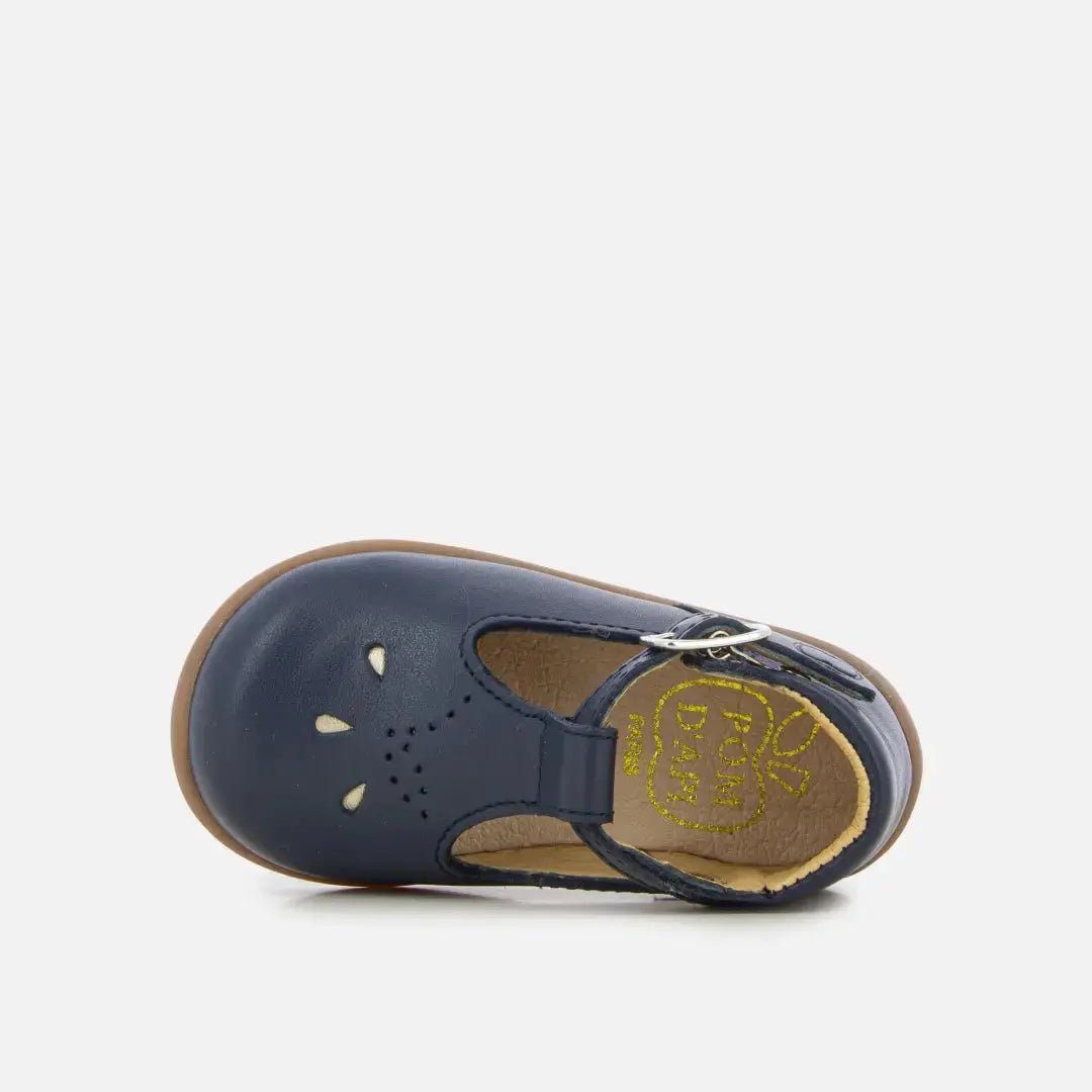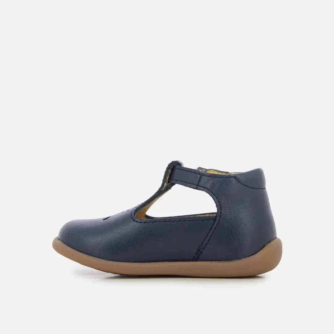 This first-step salome is presented in smooth navy-blue leather, with perforations at the front. Lightweight and with a rubber sole, this shoe is designed with quality materials for proper foot development. An Anti-Twist reinforcement at the back of the shoe ensures optimum support and stability, while offering flexibility at the front of the foot. An adjustable buckle at the ankle makes for easy adjustment.