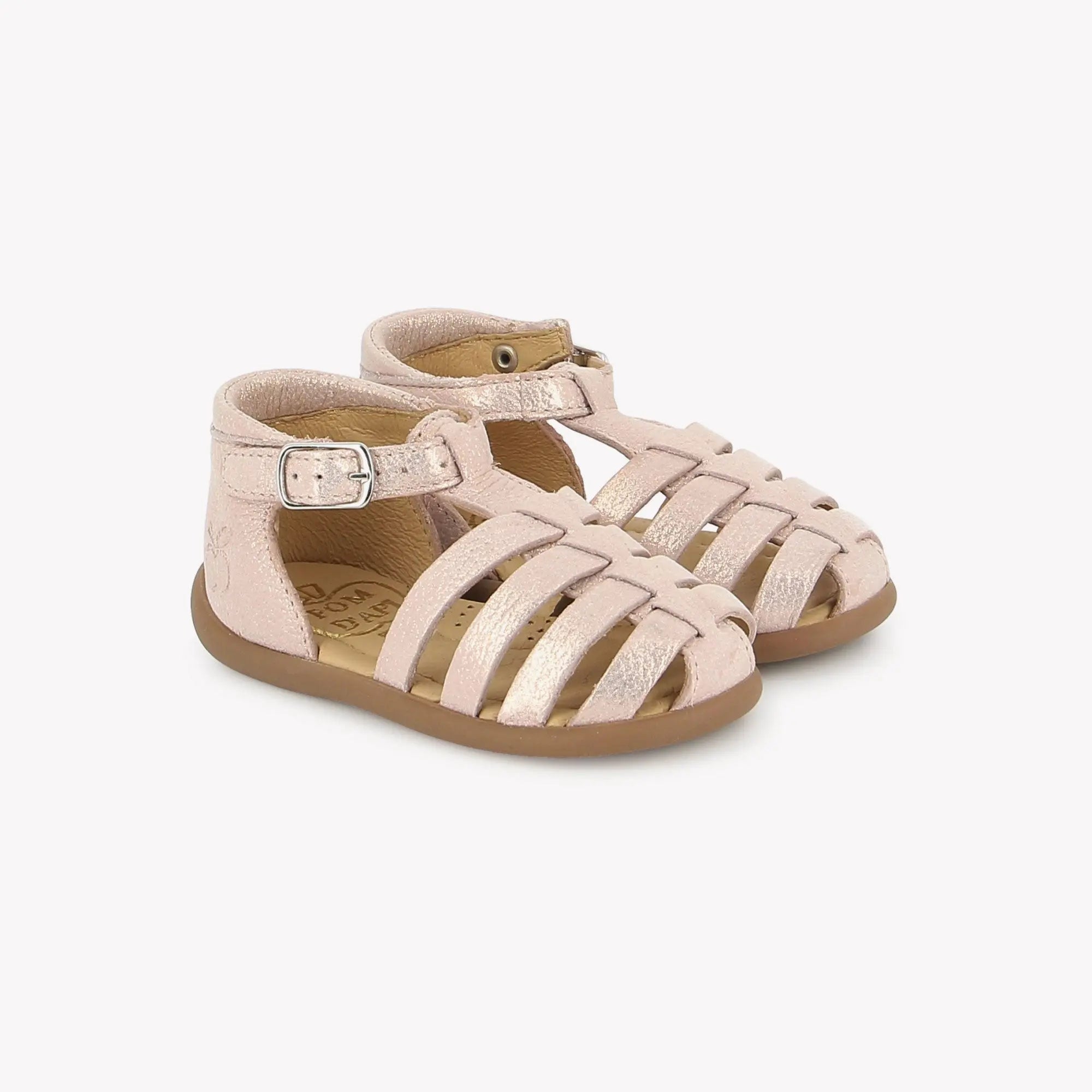 Stand Up Strap allows babies to walk in sandals while enjoying optimal support for their first steps. These little closed-toe sandals protect little toes and combine comfort with technical features: a flexible non-slip rubber sole and patented Anti-Twist© shank integrated into the heel. This innovative system stabilizes the foot and ankle while preventing twisting and maintaining great flexibility at the front of the foot, which is essential for supporting your baby's natural motor skills. Made from carefully selected premium leather, these first sandals are easy to adjust thanks to their buckle fastening, ensuring a secure fit with every step.