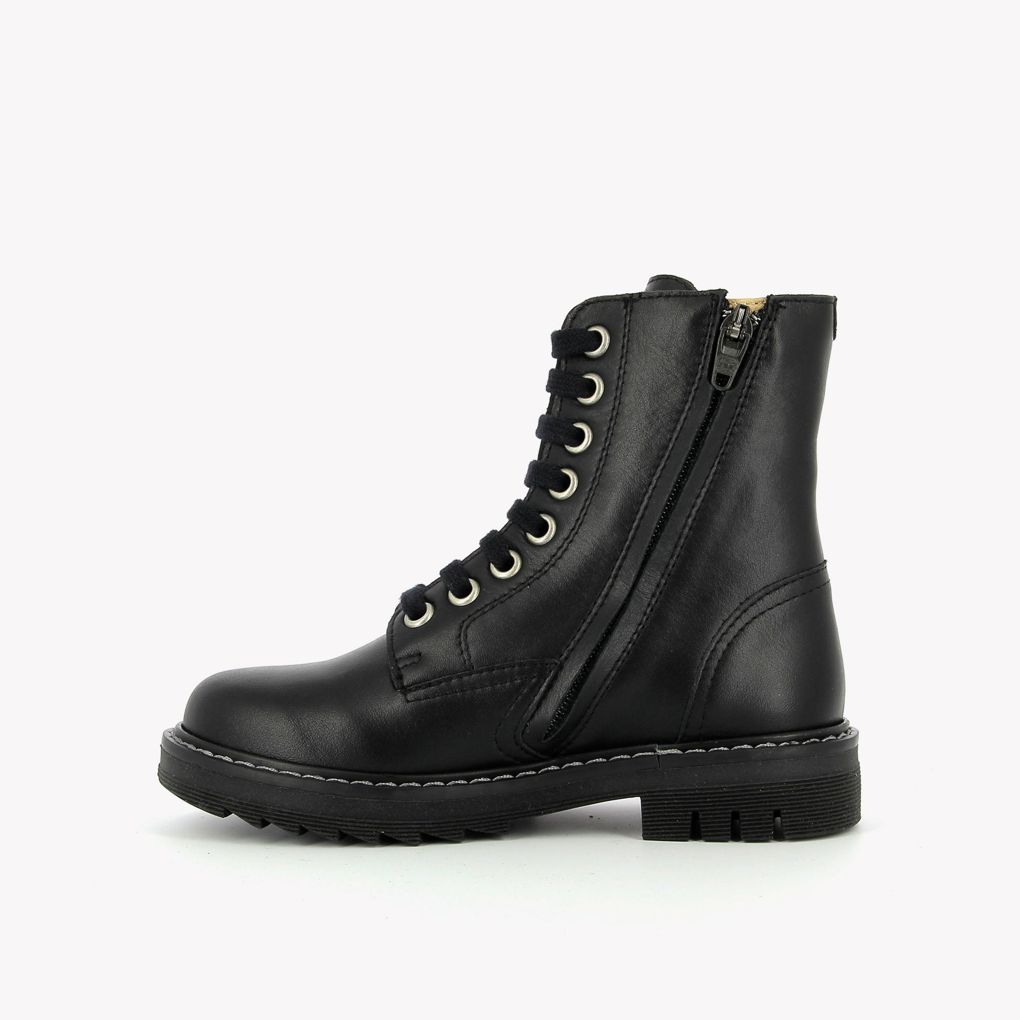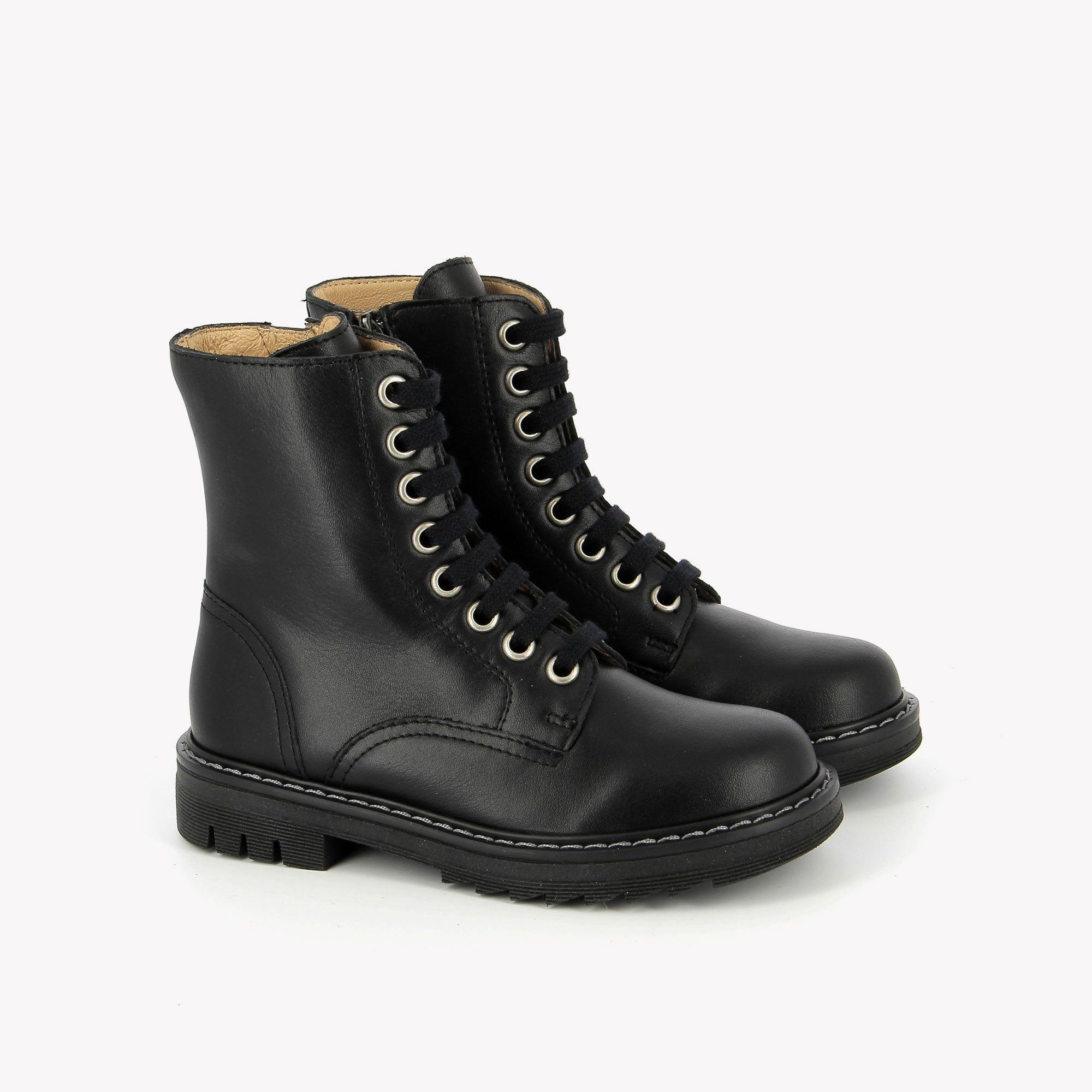This smooth leather ankle boot is inspired by the ranger style and features a lace-up fastening combined with an inside zip for easy slip-on.