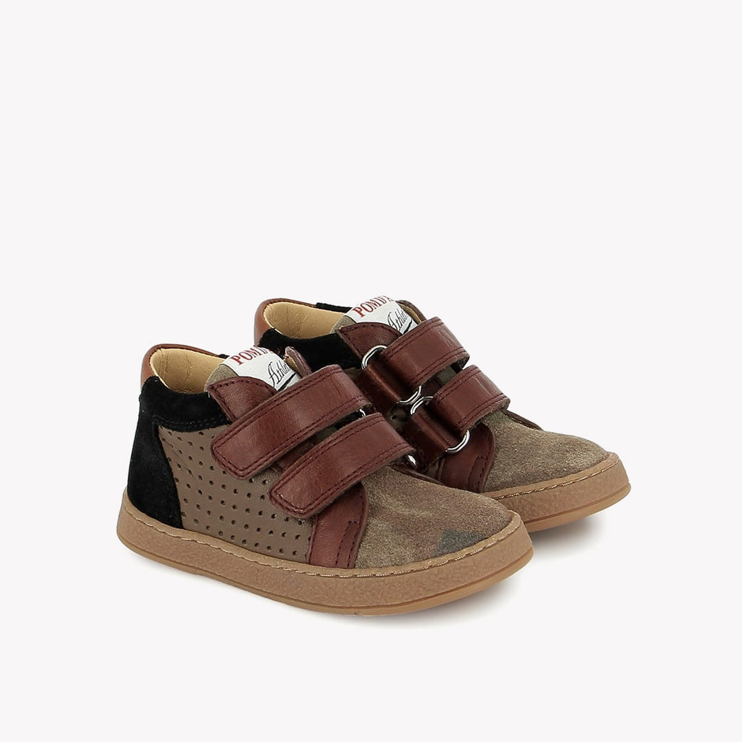 From the Athlet's line, this Pom d'Api sneaker mixes leathers and colors with style. Made entirely of leather, they fasten with hook-and-loop straps for easy, independent slip-on.