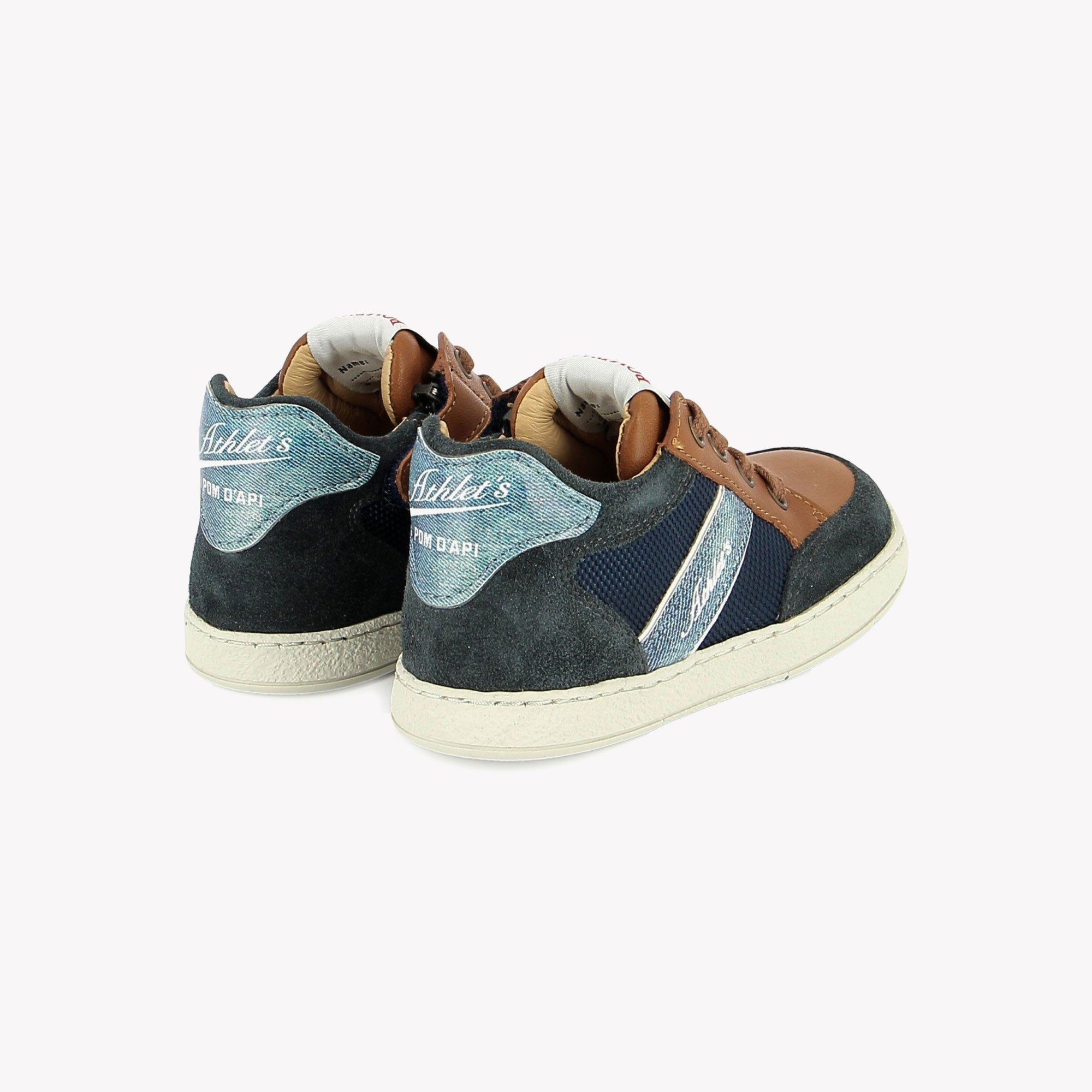 This sneaker from the Athlet's Pom d'Api line mixes colors and leathers. Made entirely in leather, they combine a lace-up fastening with an inside zip for easy slip-on.