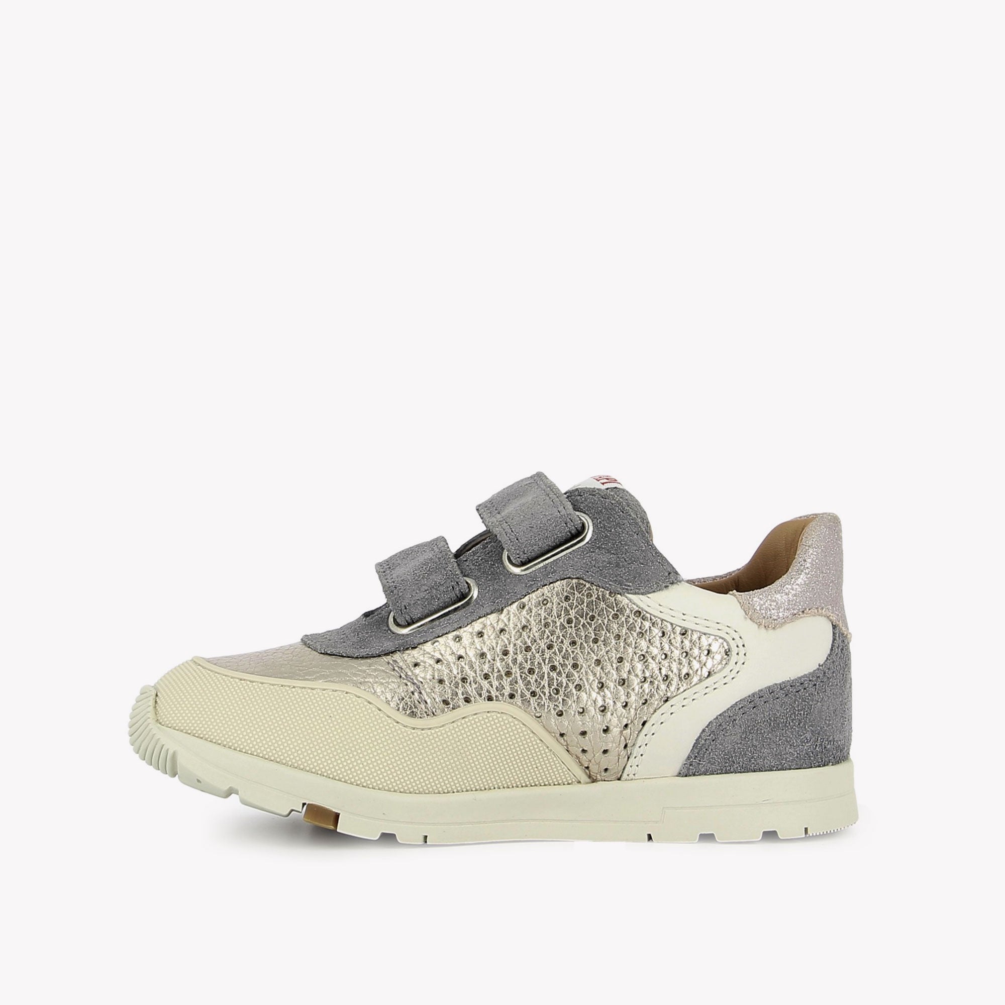 This jogger-style shoe combines practicality and modernity with its Velcro fastening and mix of materials and colors. Its sturdy rubber sole, reinforced by a solid custom cap, guarantees excellent everyday resistance.