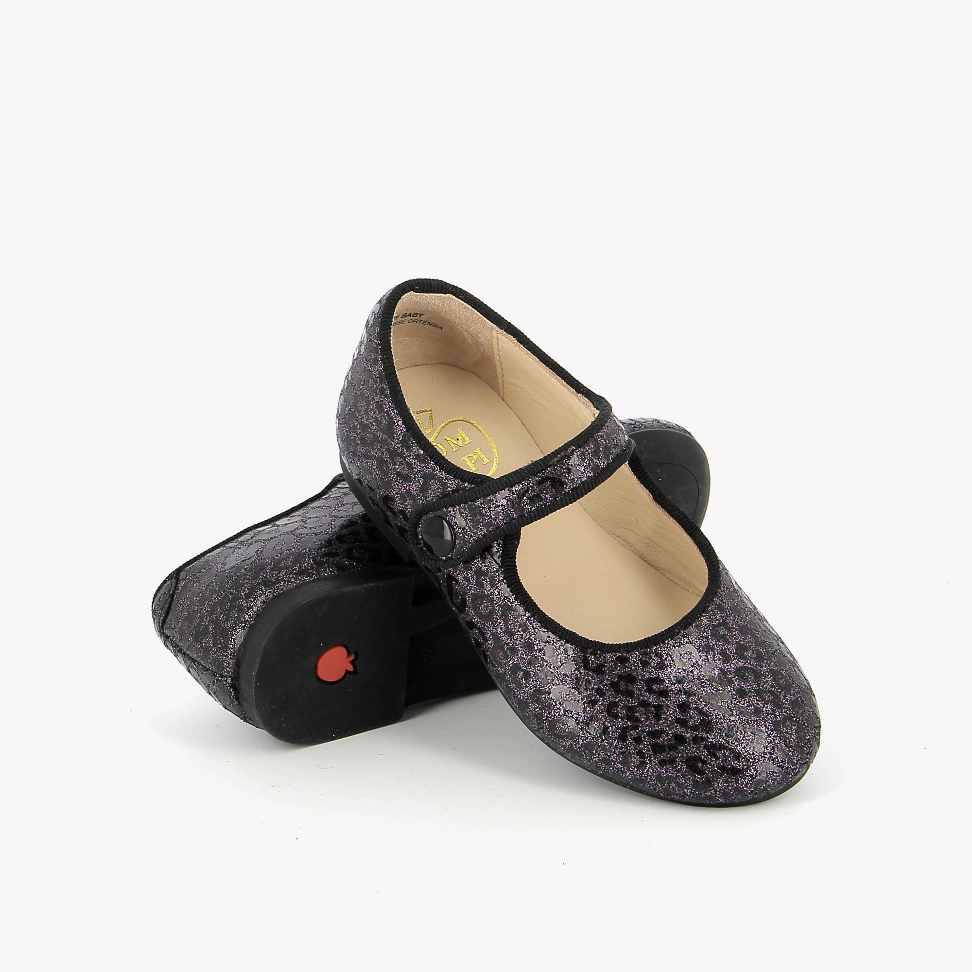 This glittery leather ballerina seduces with its elegance and practicality. It features a trompe-l'œil snap fastening for a neat effect.