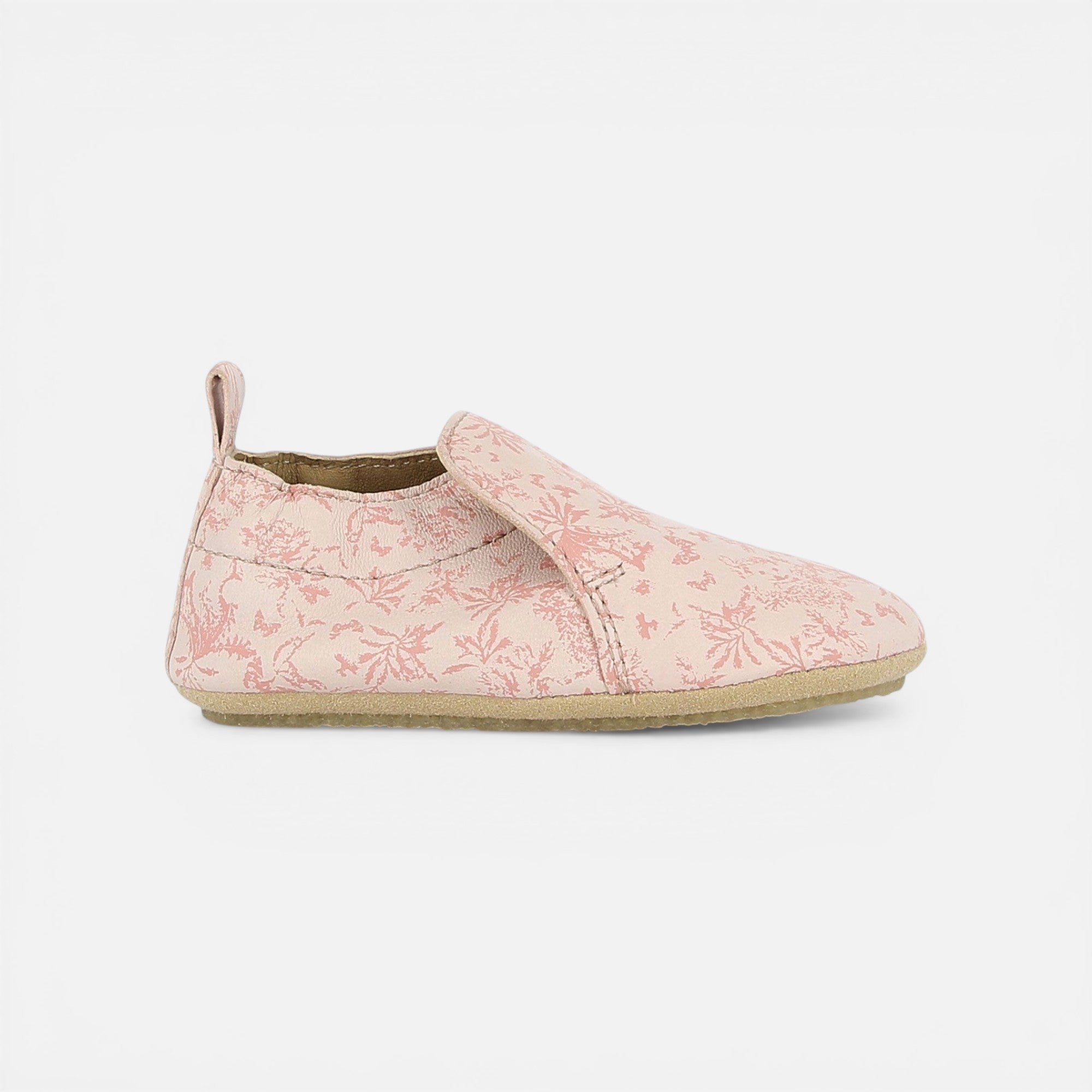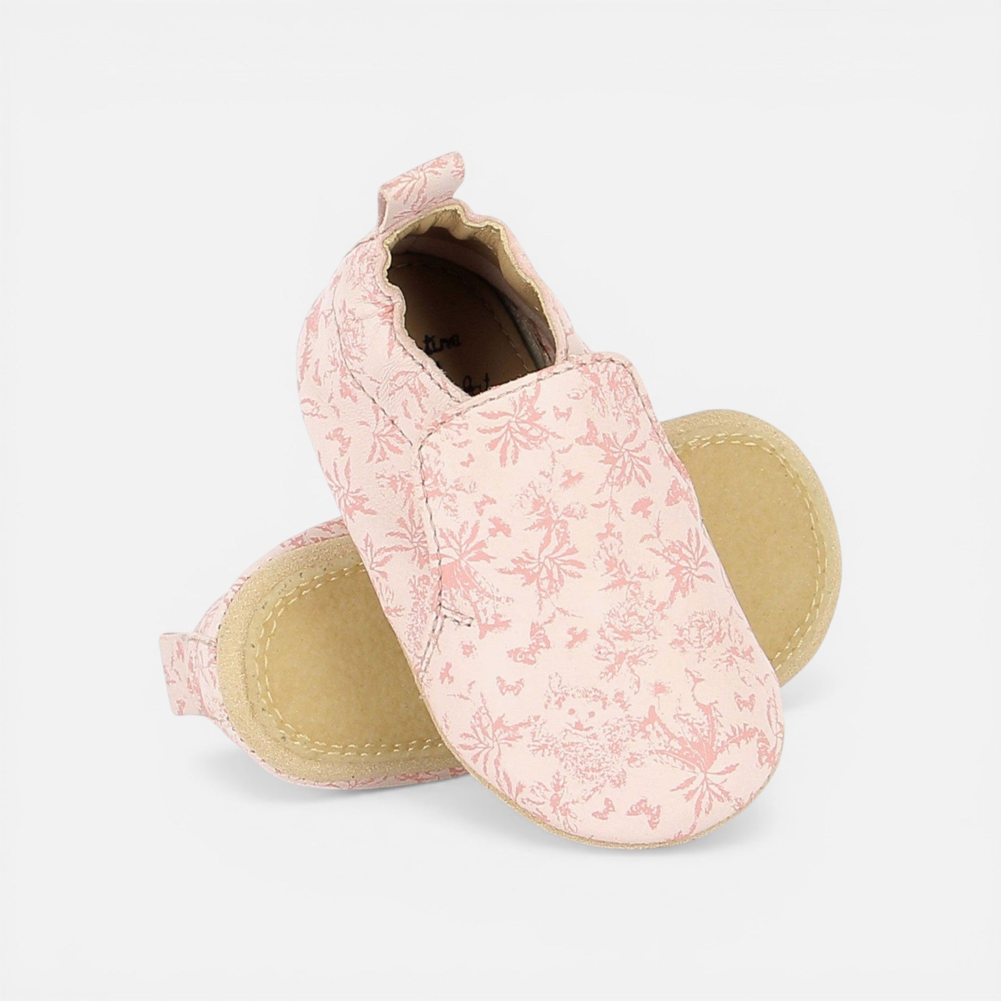 Made from soft leather, they are designed to conform to the shape of the foot and allow for freedom of movement. They are easy to slip on thanks to a special Layette elastic band. These booties feature a non-slip natural crepe sole, providing good traction and preventing slipping.