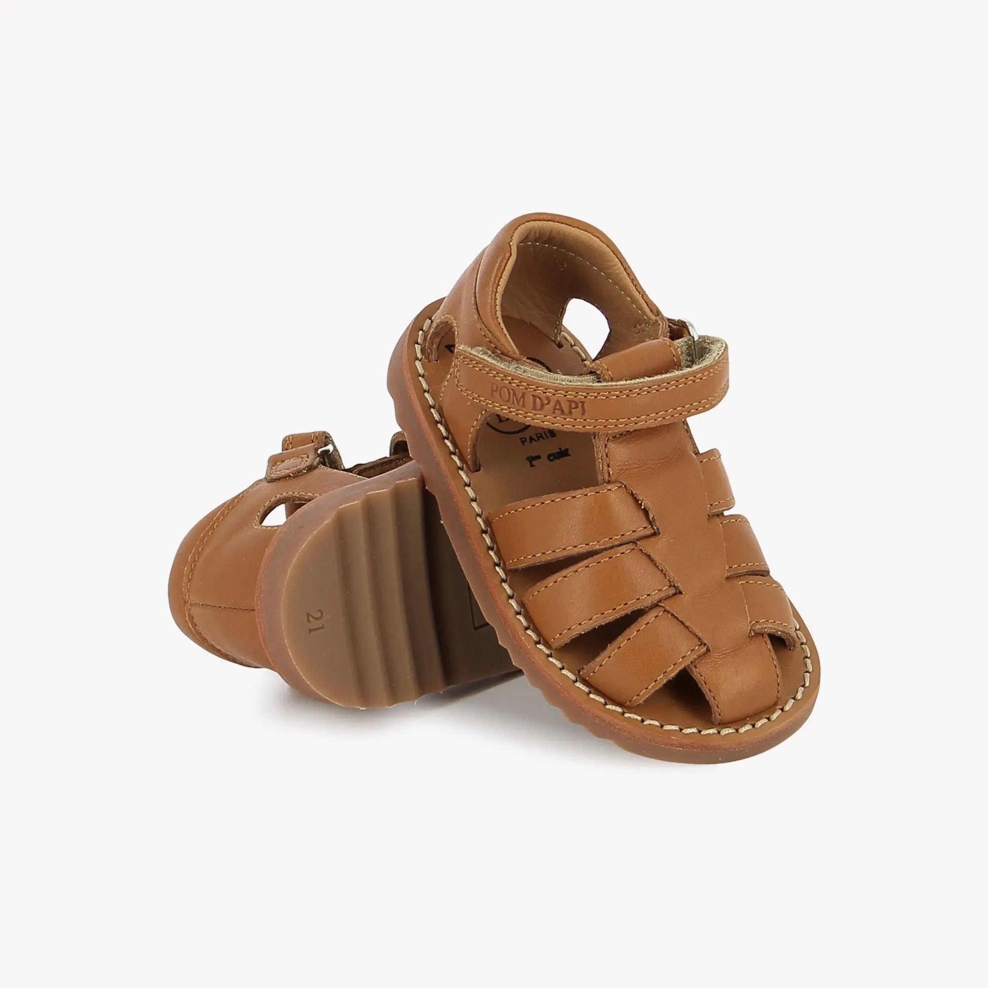Featuring leather straps and a non-slip rubber sole, this sandal is flexible and lightweight, designed with quality materials to support healthy foot development. Its high upper provides optimal support for the ankle and instep, while its hook-and-loop closure allows for easy adjustment, adapting perfectly to even the widest feet.