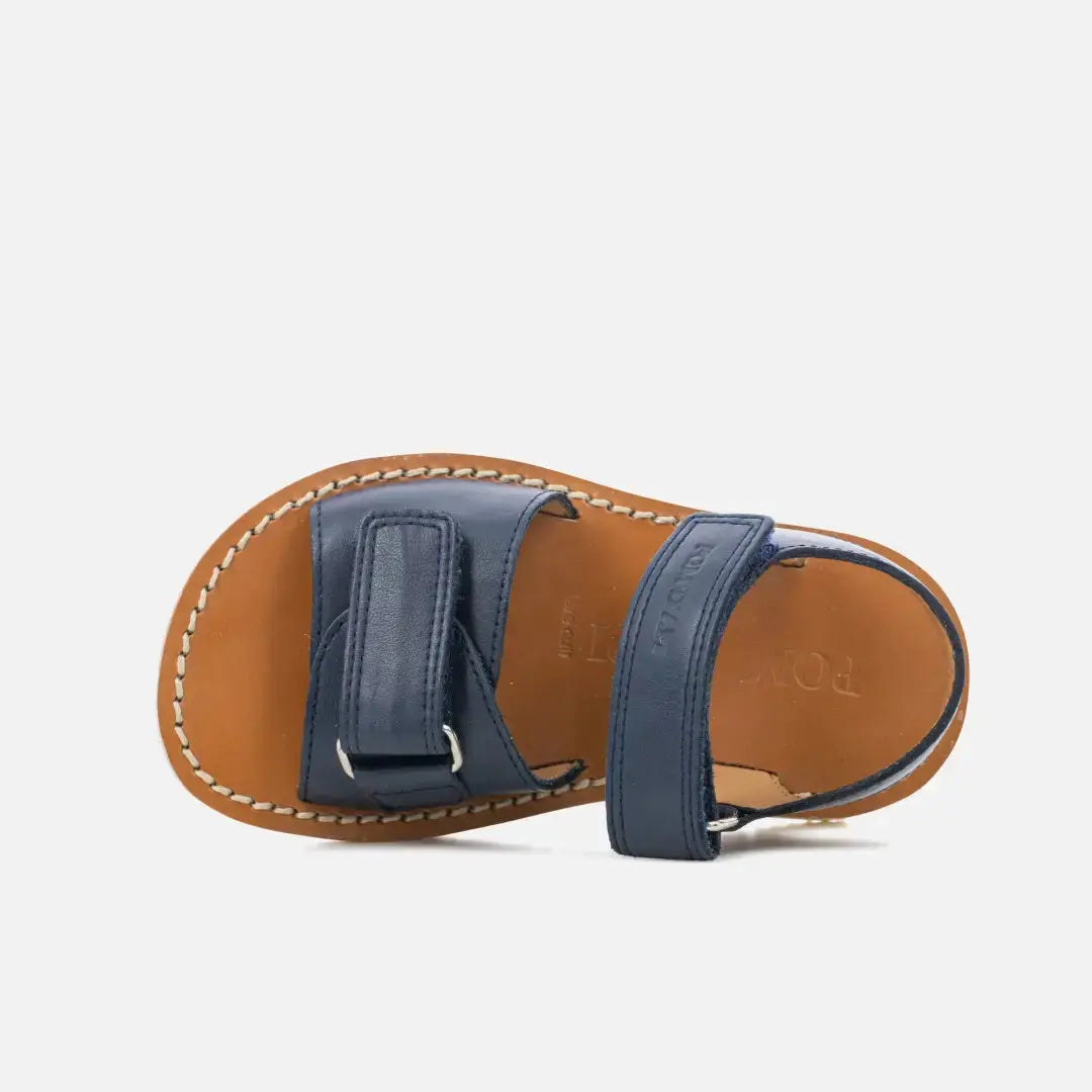 Deze kindersandaal is uitgevoerd in glad marineblauw leer. Deze soepele, lichtgewicht schoen is gemaakt van kwaliteitsmaterialen om de ontwikkeling van de voet te ondersteunen. Door de klittenbandsluiting is hij gemakkelijk rond de enkel te verstellen.