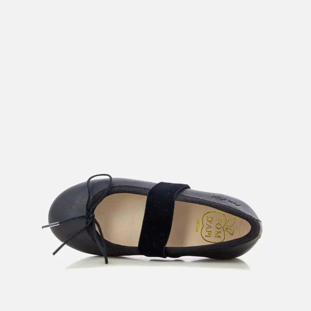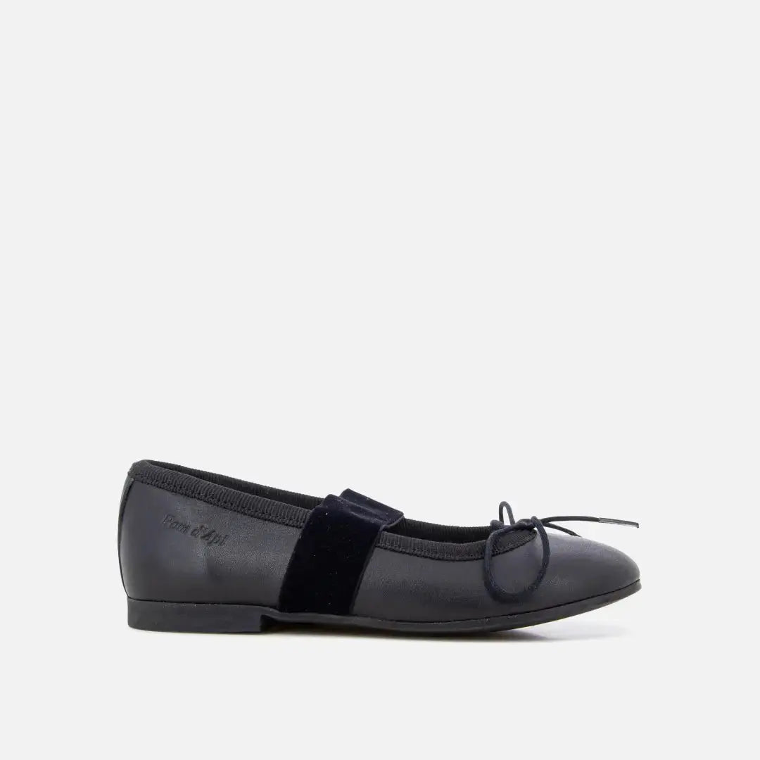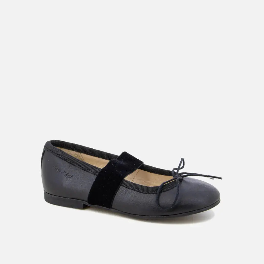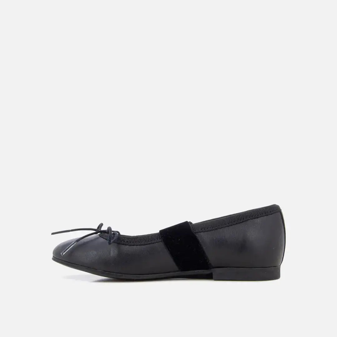 Deze kinderballerina is uitgevoerd in glad zwart leer. Hij is licht en soepel en gemaakt van kwaliteitsmaterialen die de ontwikkeling van de voet ondersteunen.