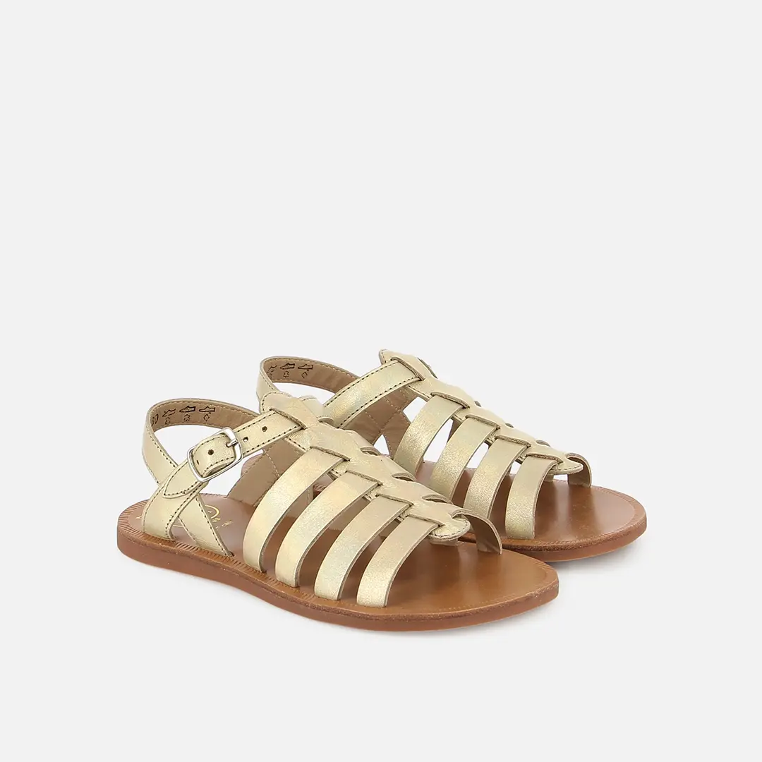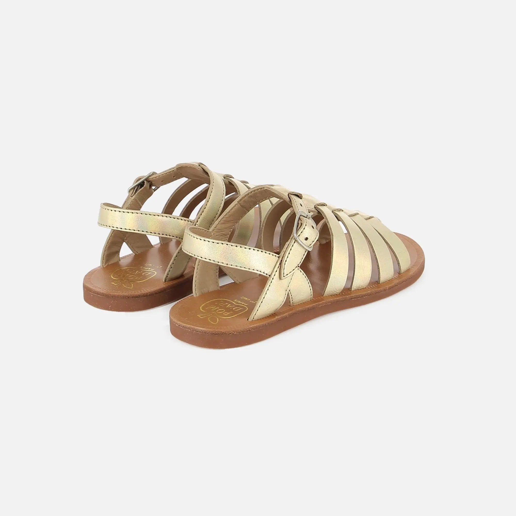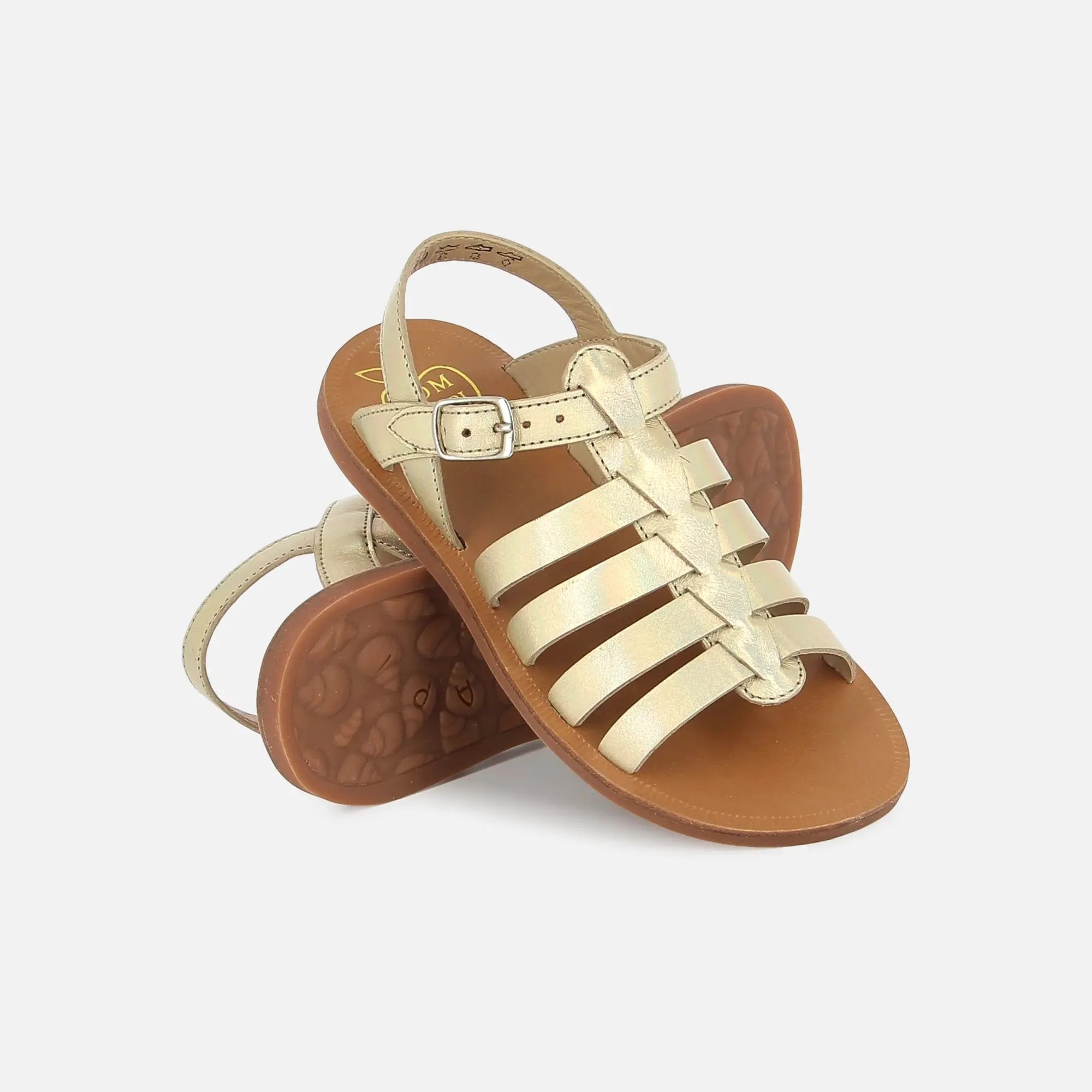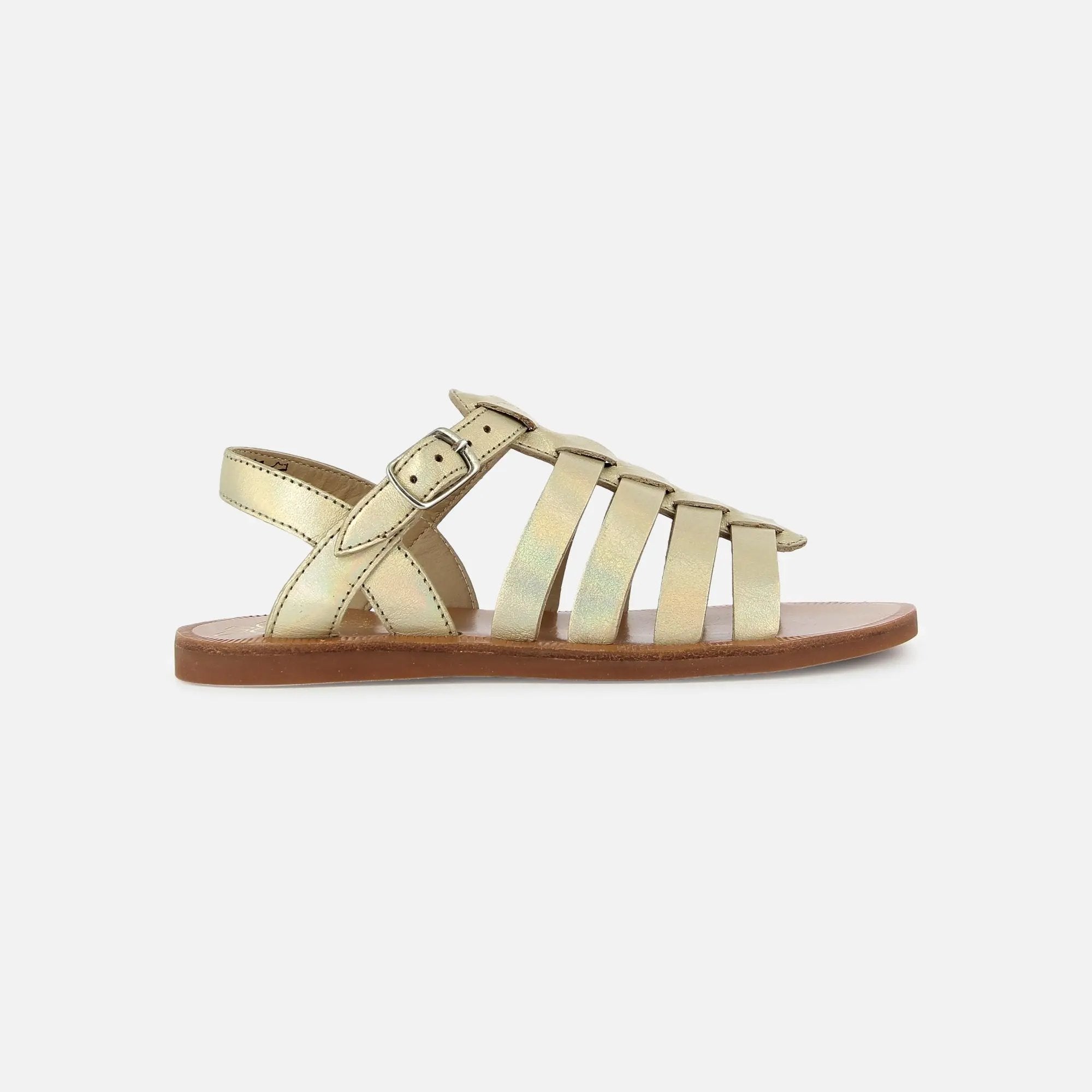 Deze kindersandaal is uitgevoerd in platina glitterleer. Deze flexibele, lichtgewicht schoen is gemaakt van kwaliteitsmaterialen om de ontwikkeling van de voet te ondersteunen. Hij is gemakkelijk aan te passen aan de enkel dankzij de verstelbare gesp.