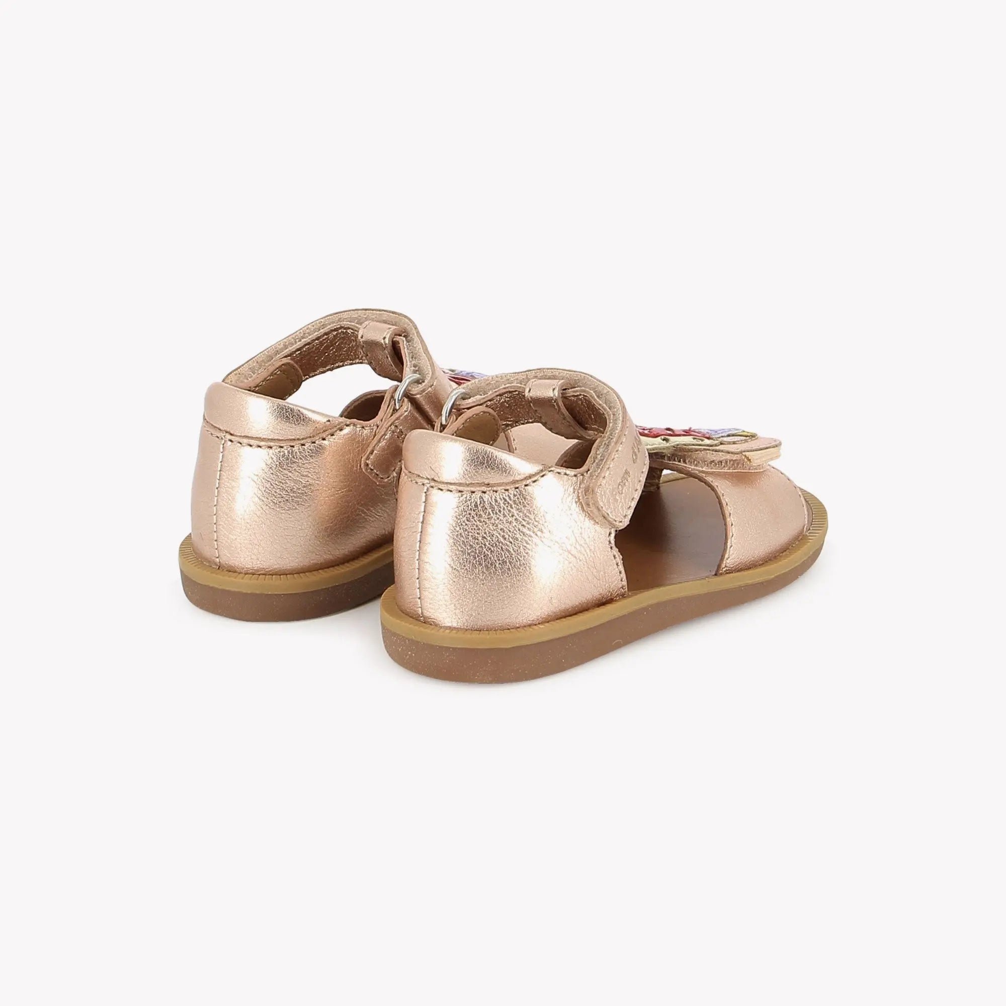 De klittenbandstrip op de wreef kan volledig worden geopend, waardoor de sandalen perfect kunnen worden aangepast en gemakkelijk aan te trekken zijn. De hoge schacht zorgt voor een uitstekende ondersteuning van de enkel en de wreef, voor dagelijks comfort en stabiliteit, zowel voor smalle als bredere enkels. Een delicate vlinderafwerking op de wreef geeft de sandaal een elegante uitstraling.