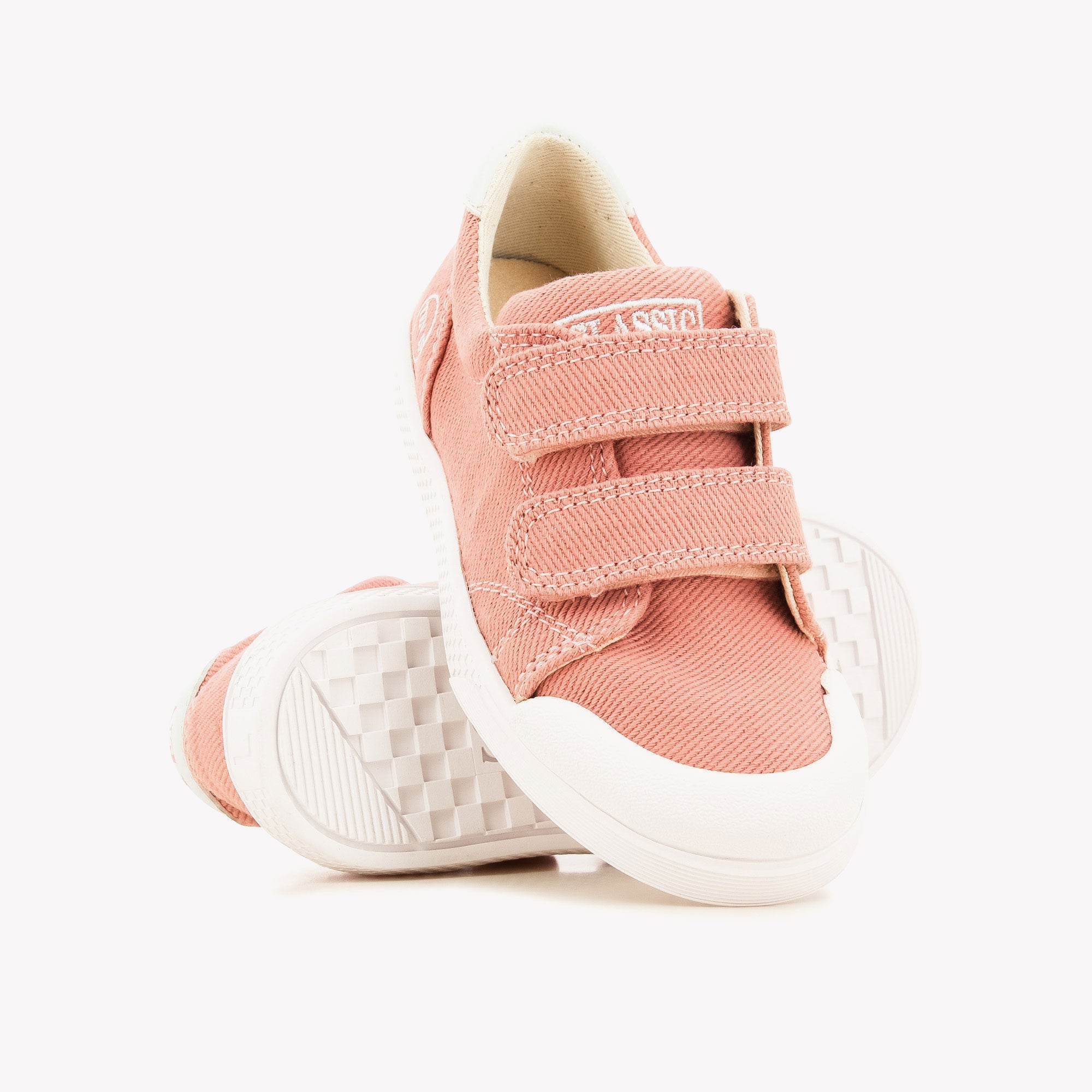 Deze kindertrainer is er in een roze canvas uitvoering. Hij is gemaakt van kwaliteitsmaterialen om de ontwikkeling van de voet te ondersteunen. Hij is gemakkelijk aan te trekken dankzij de klittenbandsluiting.