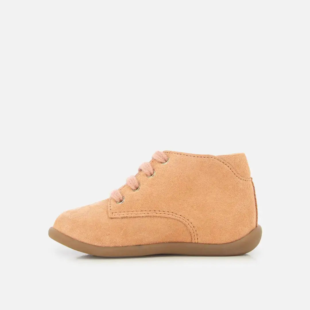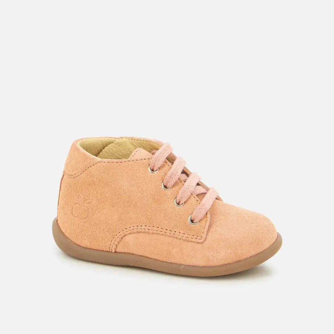 Deze veterschoen voor kinderen is uitgevoerd in lichtroze suèdeleer. Lichtgewicht en met een rubberen zool, is deze schoen gemaakt van kwaliteitsmaterialen om de ontwikkeling van de voet te ondersteunen. Een Anti-Twist-versteviging aan de achterkant van de schoen zorgt voor optimale ondersteuning en stabiliteit, terwijl hij flexibiliteit biedt aan de voorkant van de voet.