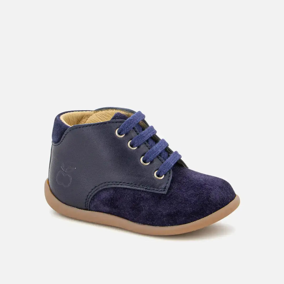 Deze veterschoen voor kinderen is verkrijgbaar in twee materialen, glad leer en navy suède. Lichtgewicht en met een rubberen zool is deze schoen gemaakt van kwaliteitsmaterialen voor een goede ontwikkeling van de voet. Een Anti-Twist-versteviging aan de achterkant van de schoen zorgt voor optimale ondersteuning en stabiliteit, terwijl hij flexibiliteit biedt aan de voorkant van de voet.