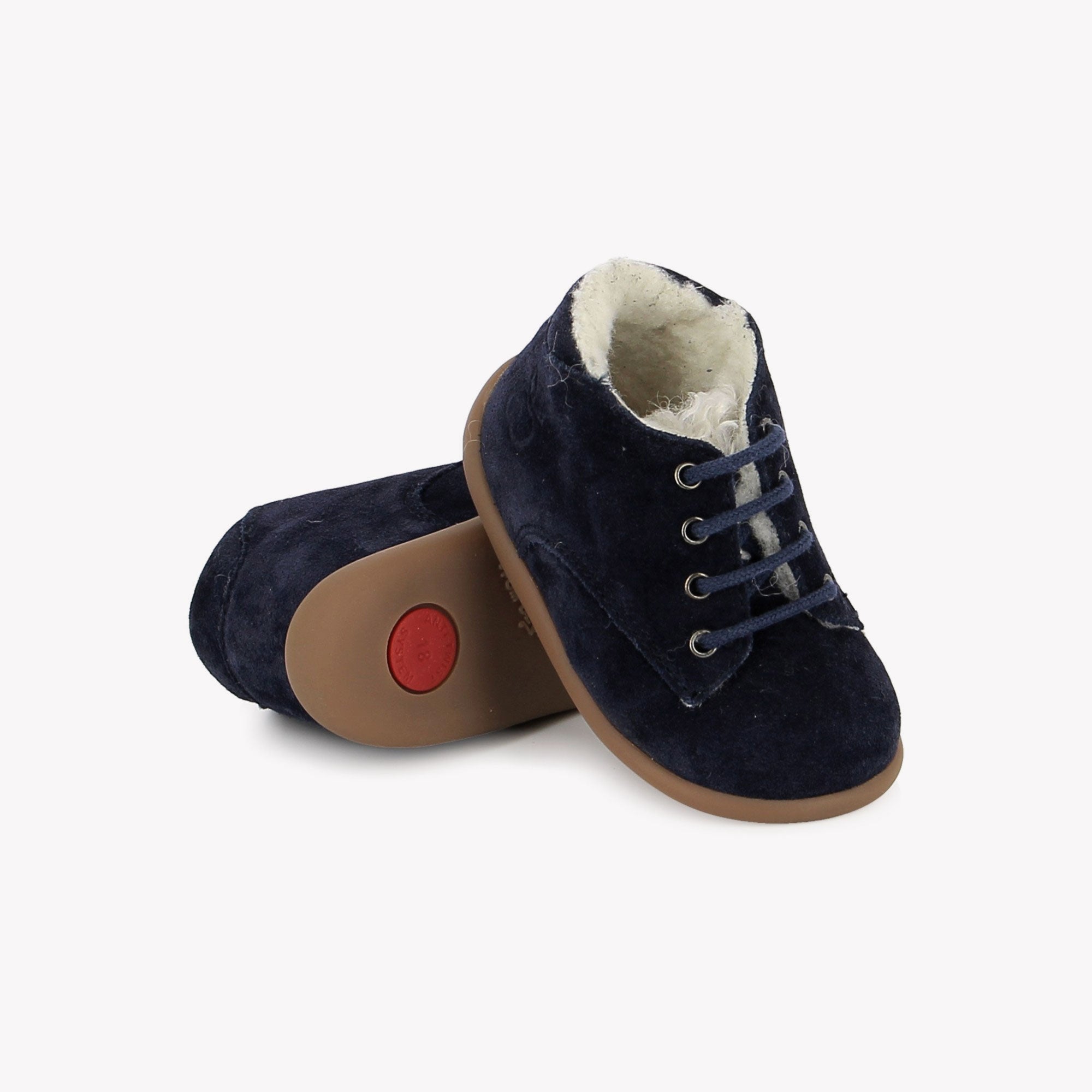 Dit derbymodel is ontworpen voor actieve kinderen en uitgevoerd in suèdeleer met een voering van echt schapenleer . De flexibele zool zorgt voor veel bewegingsvrijheid, terwijl de textielen binnenzool het comfort verhoogt. De rubberen zool heeft een hielkap. Deze versteviging voorkomt verdraaiing van de enkel en wreef dankzij het door Pom d'Api gepatenteerde Anti-Twist© systeem. De marineblauwe kleurstelling maakt het functionele, moderne ontwerp compleet. Tot slot is deze schoen gemakkelijk rond de enkel te verstellen dankzij de veter.