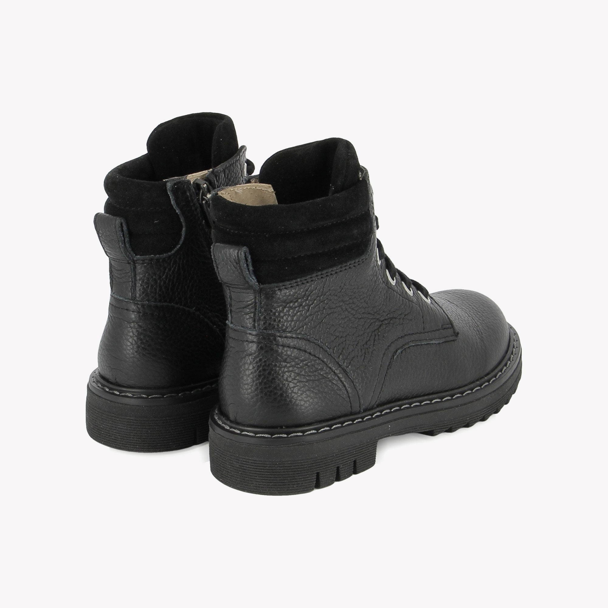 Deze enkellaarsjes zijn gemaakt van generfd leer en hebben een binnenrits met vetersluiting voor optimale ondersteuning en gemakkelijke slip-on.