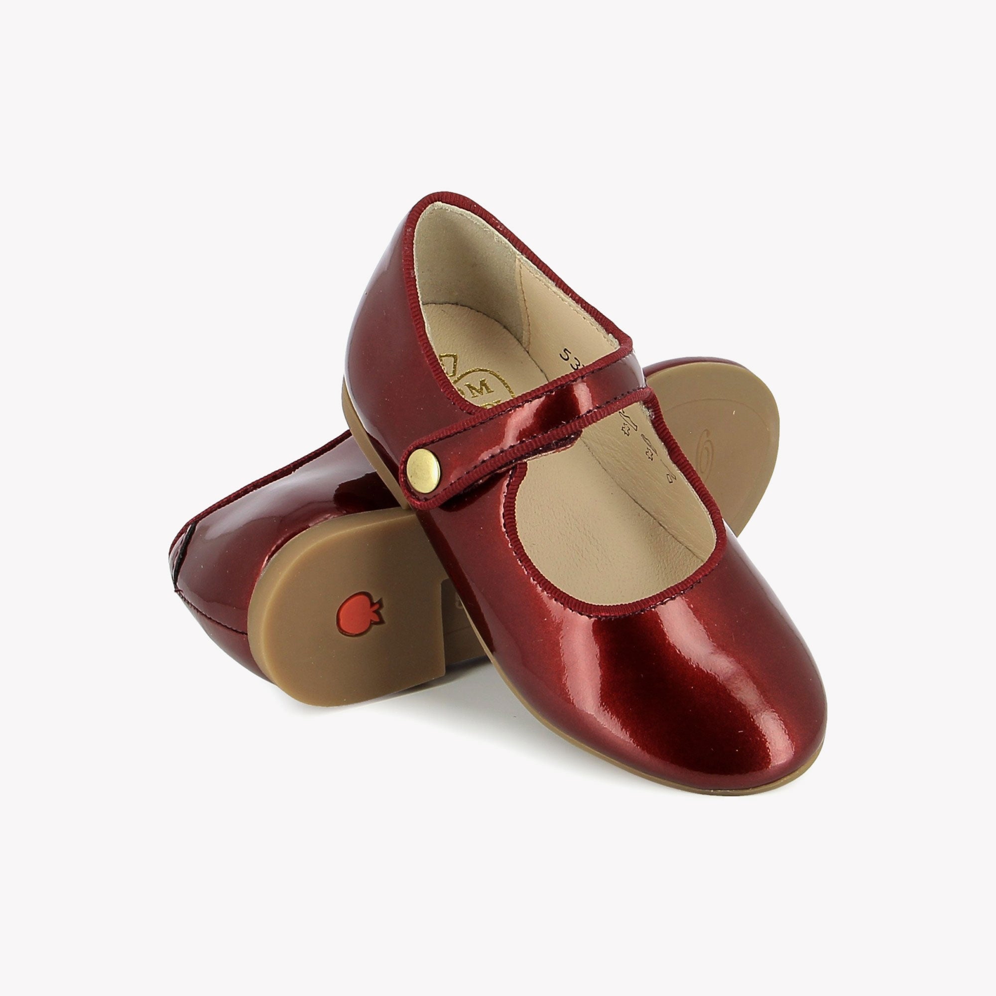 Deze ballerina van lakleer is zowel elegant als praktisch. Ze heeft een trompe-l'œil drukknoopsluiting voor een net effect. De leren binnenzool zorgt de hele dag voor een comfortabele pasvorm. Hier getoond in donkerrood lakleer, begeleidt het elke stap met zachtheid en sereniteit.