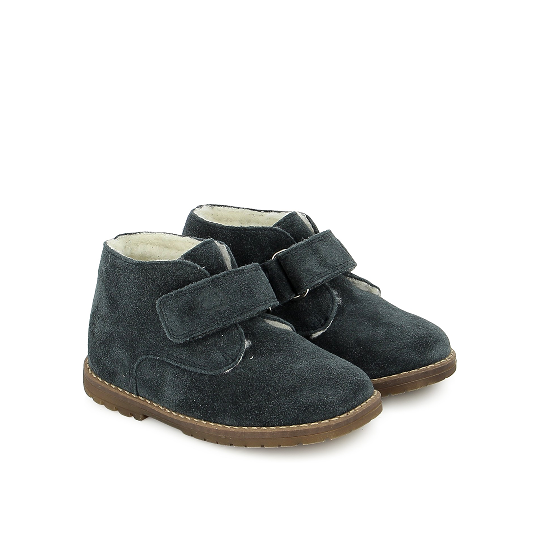 Deze instappers zijn gemaakt van grijs suèdeleer. Ze zijn stevig en soepel en hebben een synthetische voering om kleine voetjes de hele winter warm te houden.