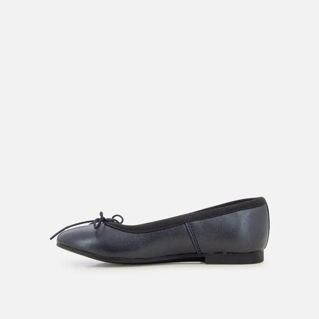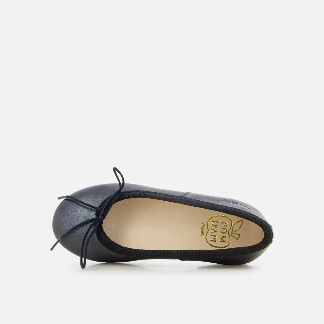 Cette ballerine pour enfants est présentée dans une version en cuir lisse noir. Cette chaussure souple et légère est conçue avec des matériaux de qualité pour le bon développement du pied.