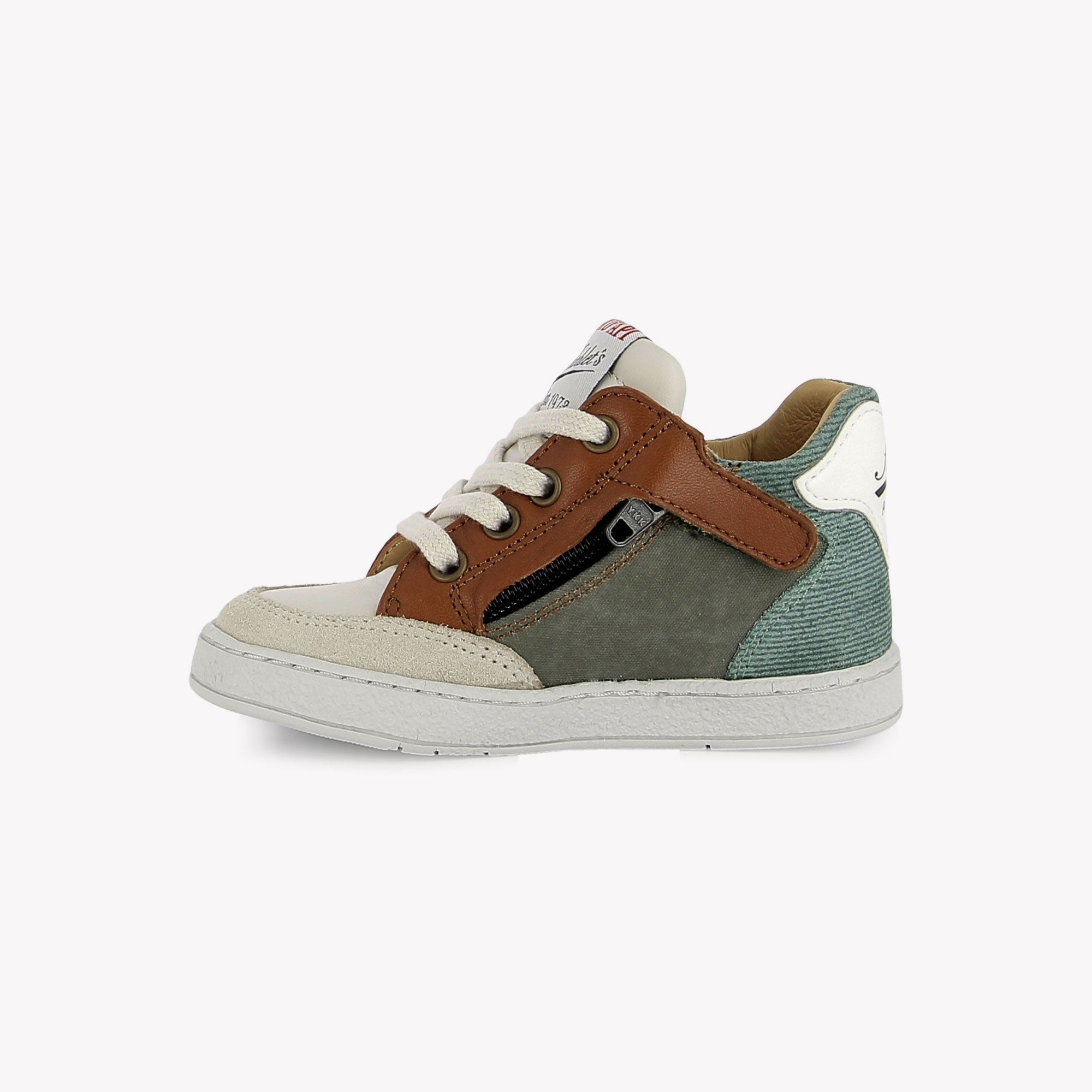 Sa semelle souple accompagne chaque mouvement avec légèreté, tandis que la première de propreté en latex, amovible, apporte un confort moelleux au quotidien et permet un entretien facile. Adaptée aux petites pointures, elle se décline ici dans un élégant mélange de teintes et de cuirs.